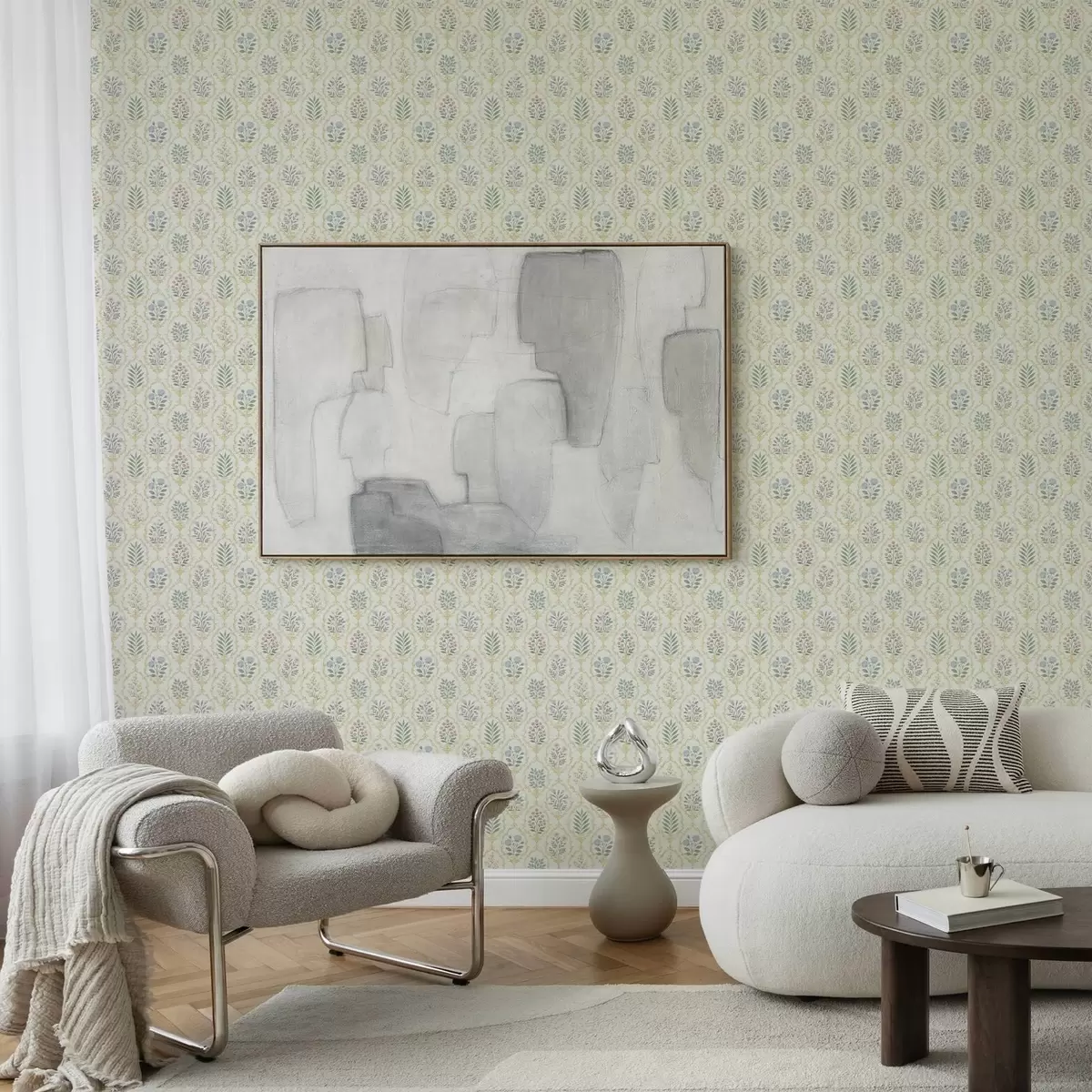 Tapety Botaniczne medaliony w kratce, pastelowe odcienie Nr. a00579