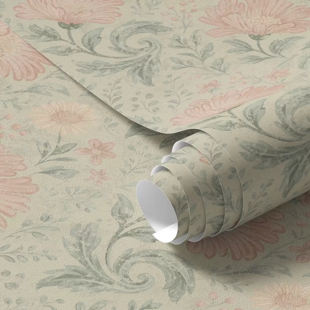 Tapety Duże kwiaty brzoskwini w stylu vintage z liśćmi szałwii Nr. a00580