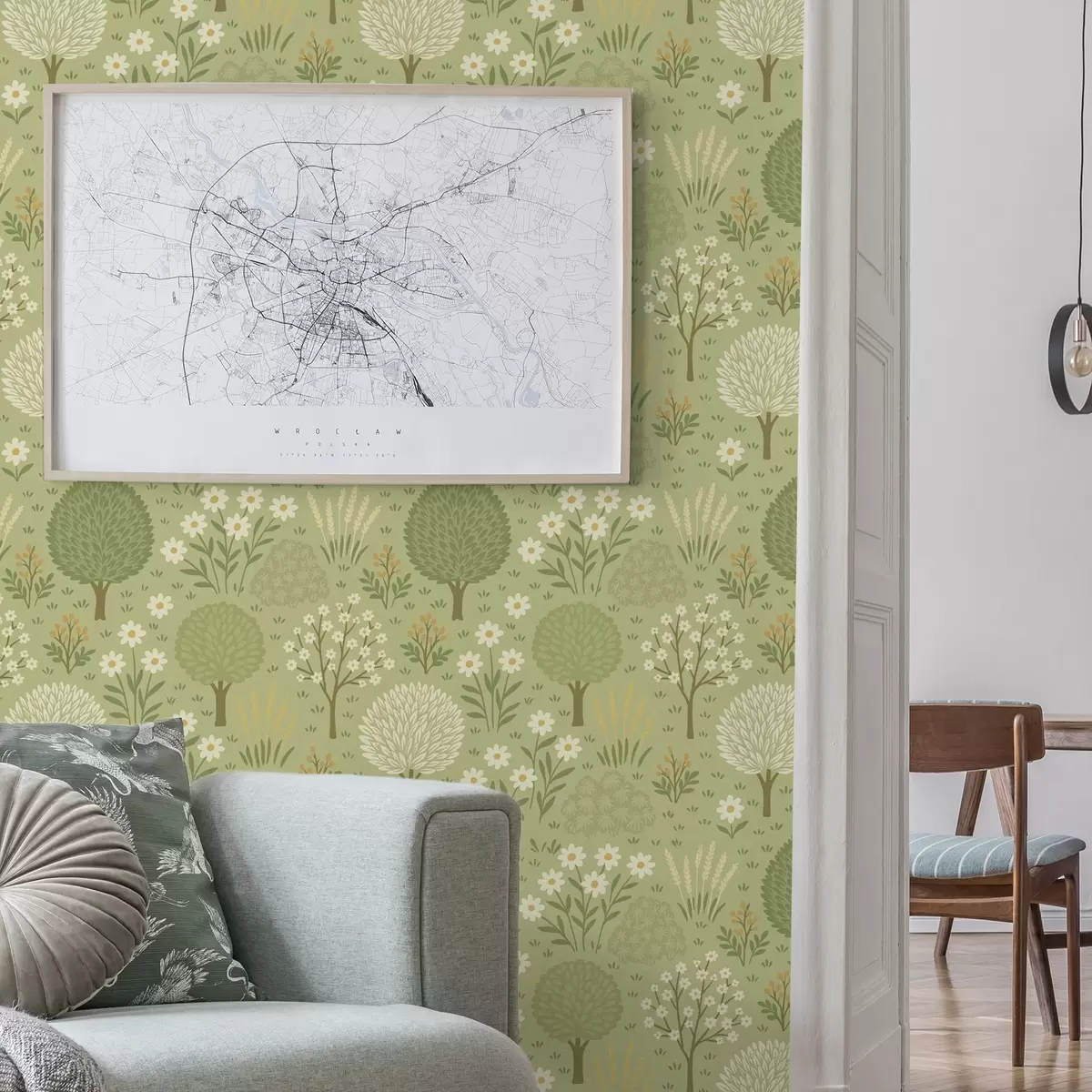 Tapety Zielony ogród dla dzieci: drzewa, kwiaty i pszenica Nr. a00586