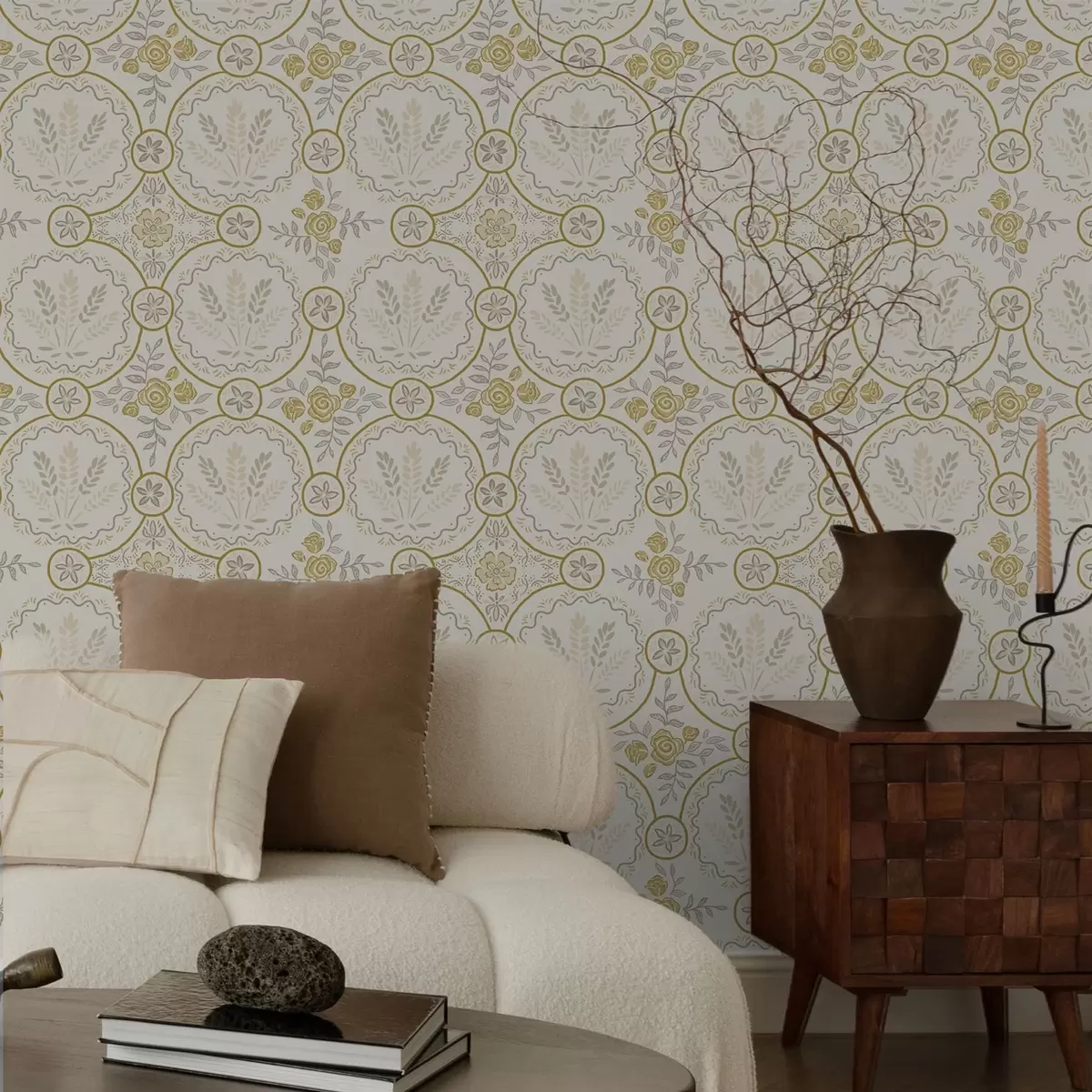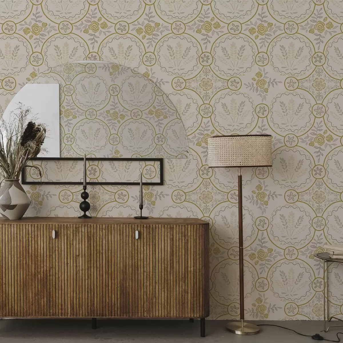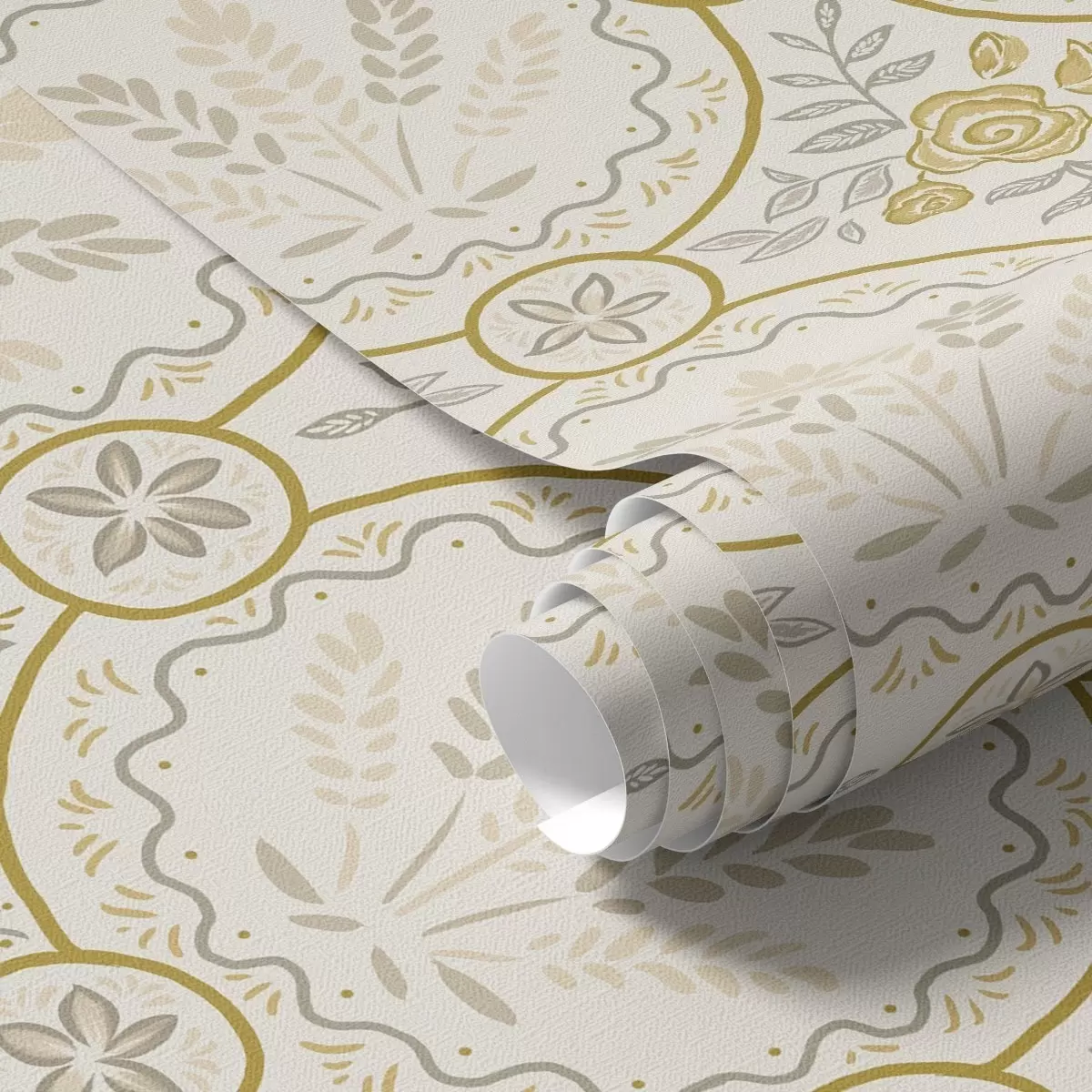 Tapety Retro ornament z pszenicą i różami w kolorze złotym Nr. a00595