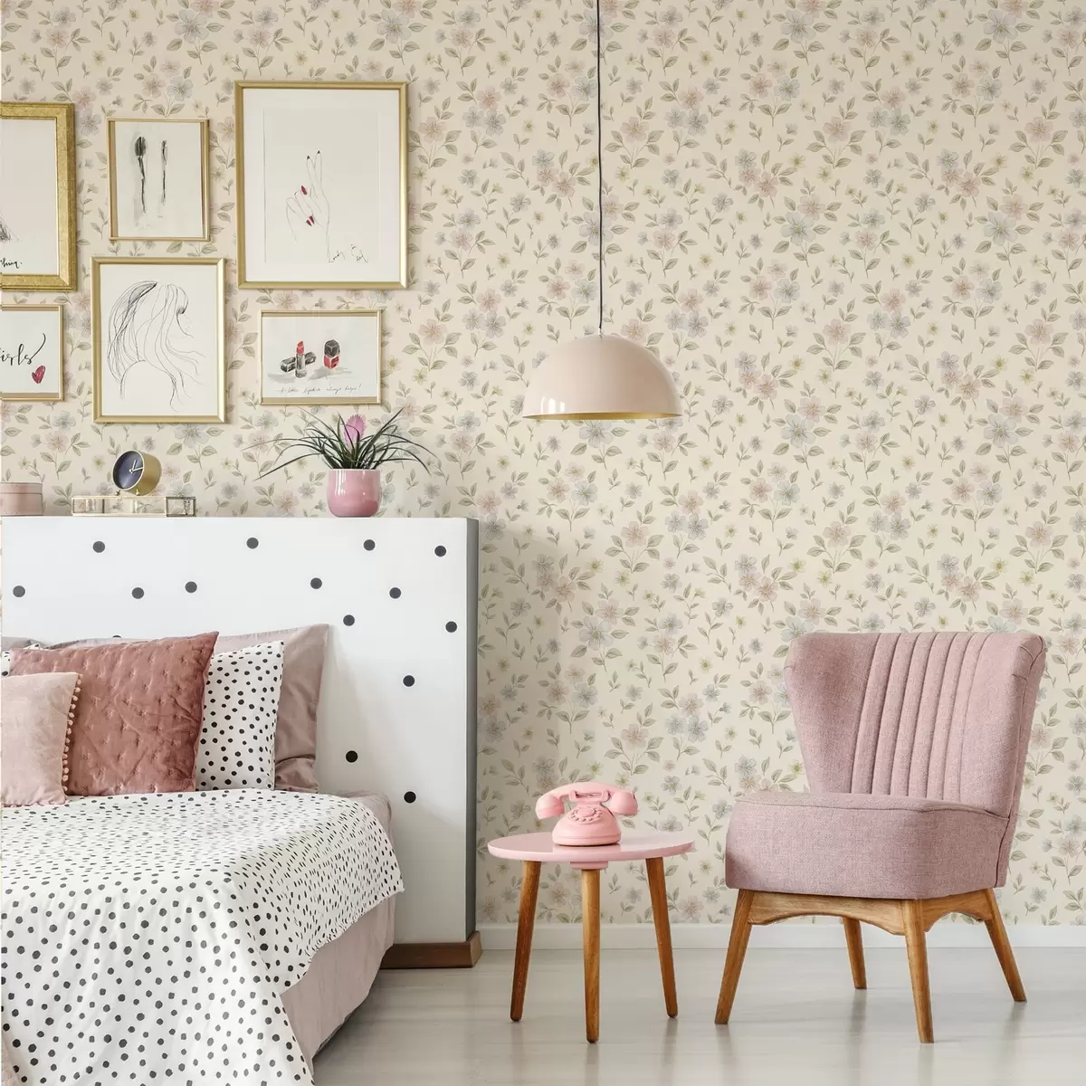 Tapety Pastelowe kwiaty łąkowe na kremowym tle Nr. a00596