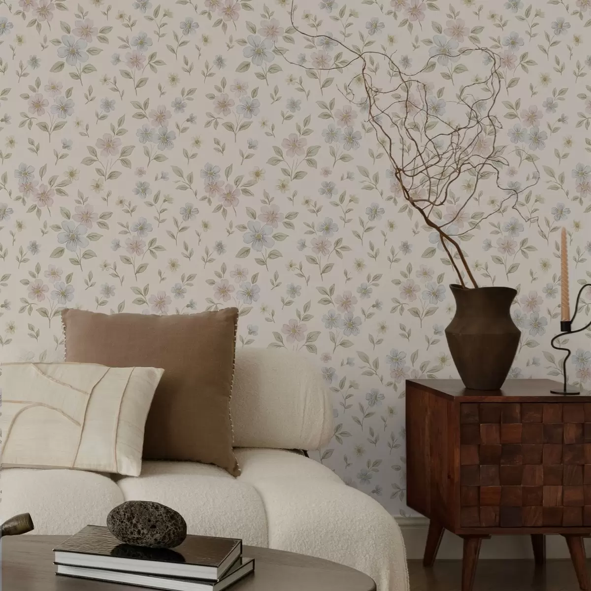 Tapety Pastelowe kwiaty łąkowe na kremowym tle Nr. a00596