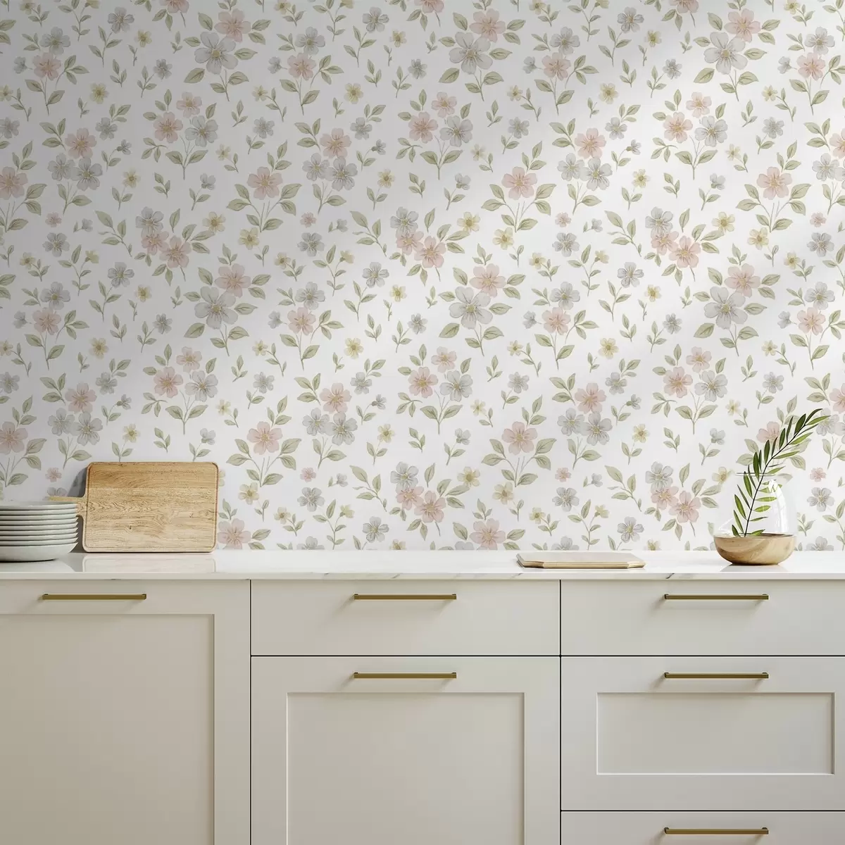 Tapety Małe kwiaty namalowane pastelowymi akwarelami na białym tle Nr. a00596v1