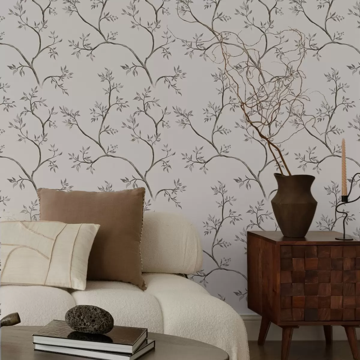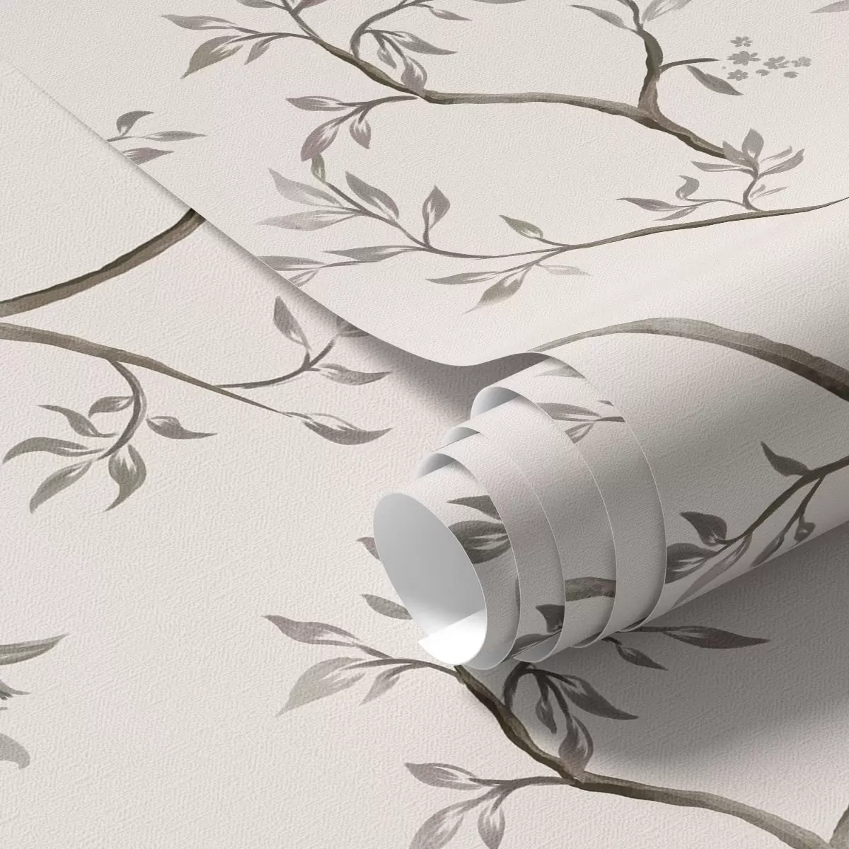 Tapety Delikatne gałązki liściaste na ciepłym kremowym tle Nr. a00597v1