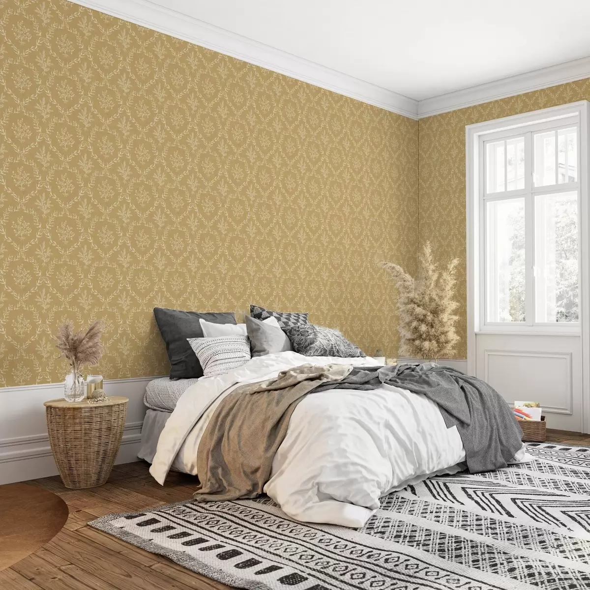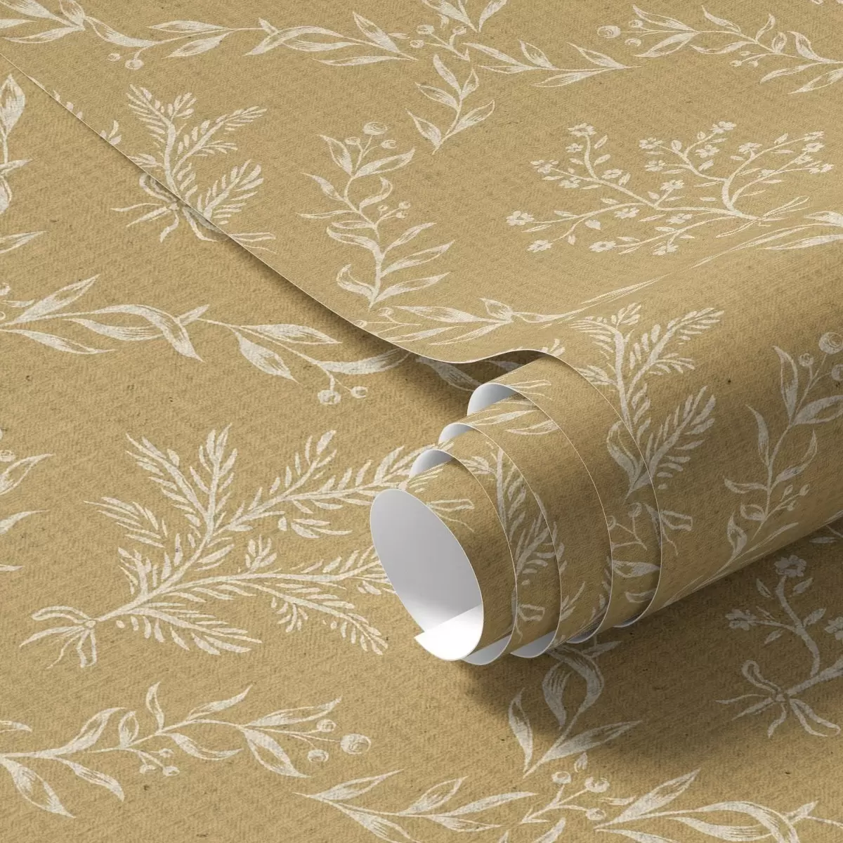 Tapety Białe wieńce z ziół i kwiatów na musztardowym tle Nr. a00599
