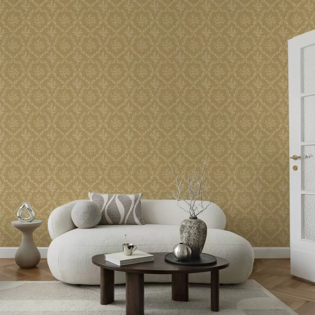 Tapety Białe wieńce z ziół i kwiatów na musztardowym tle Nr. a00599