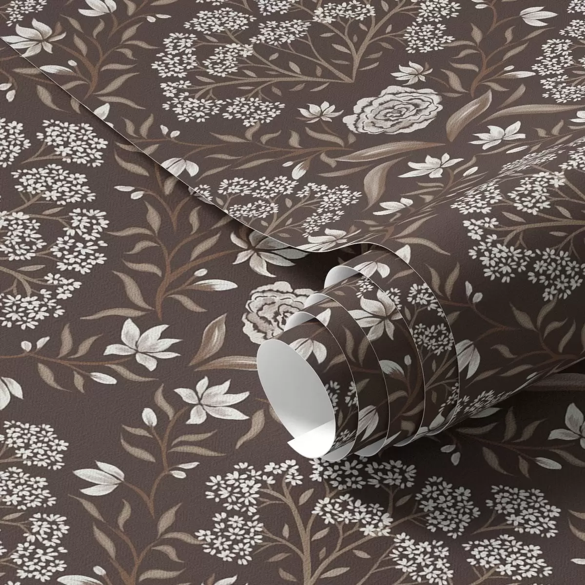 Tapety Ciemna czekolada damasceńska z piwoniami i przebiśniegami Nr. a00603v2