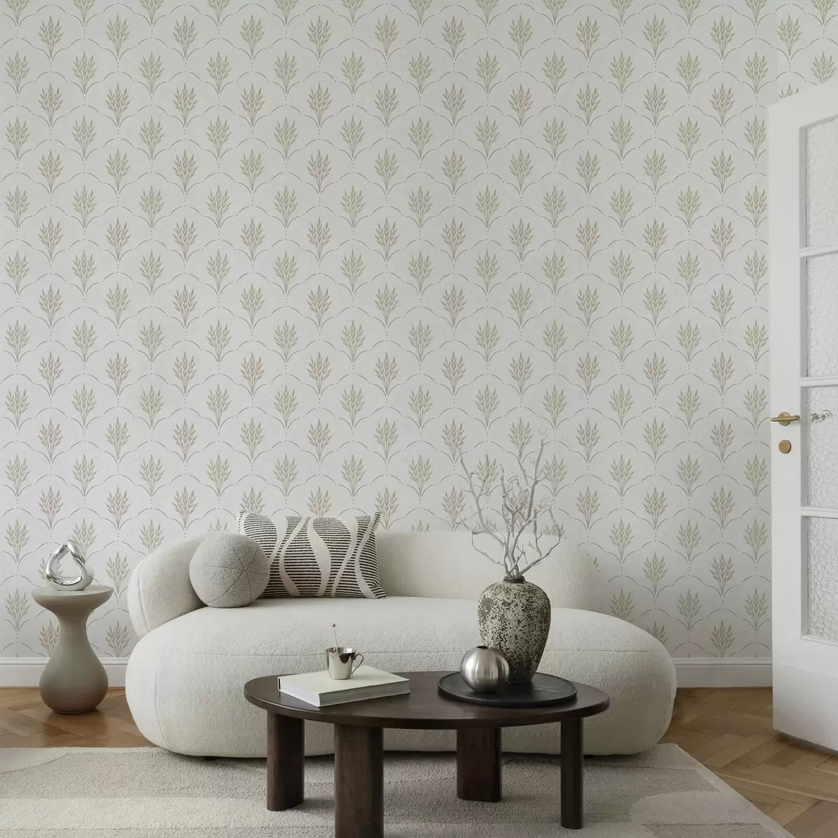 Tapety Pszenica w łukowatej ornamentyce, delikatne pastele na białym tle Nr. a00607v1