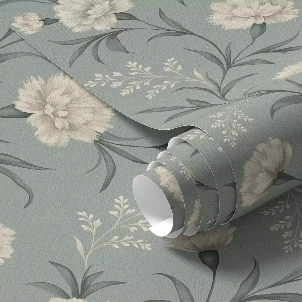 Tapety Pudrowe goździki na szaro-turkusowym tle, wyrafinowany nadruk Nr. a00610