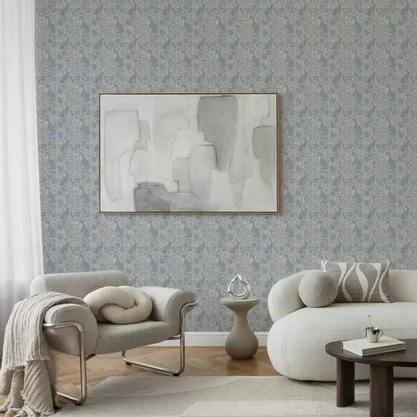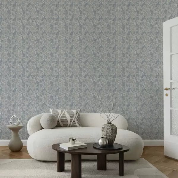 Tapety Leśne zwierzęta i kwiaty: lis i zając w odcieniach niebieskiego Nr. a00613