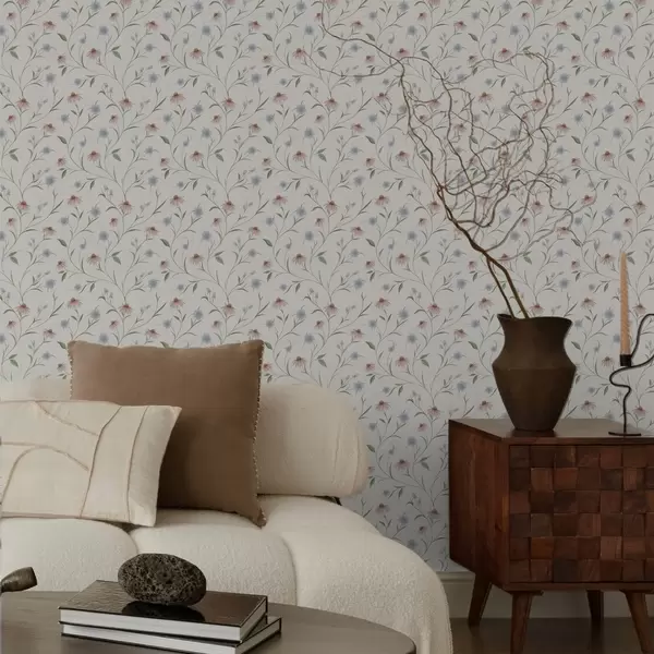 Tapety Stokrotki polne i jeżówka na kremowym tle, lekkość Nr. a00614