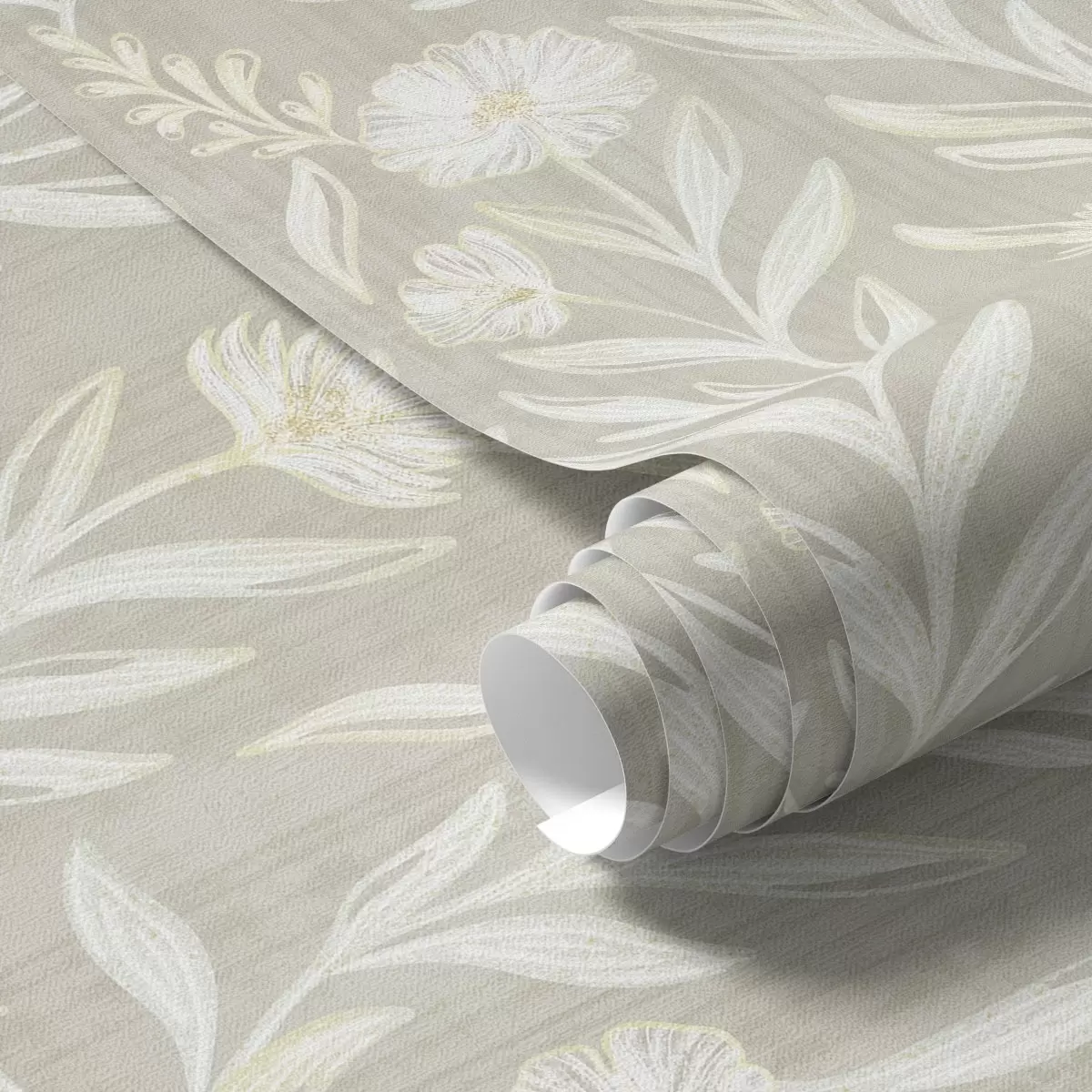 Tapety Jasne trawy i kwiaty na beżowym tle, szkicowe linie Nr. a00618