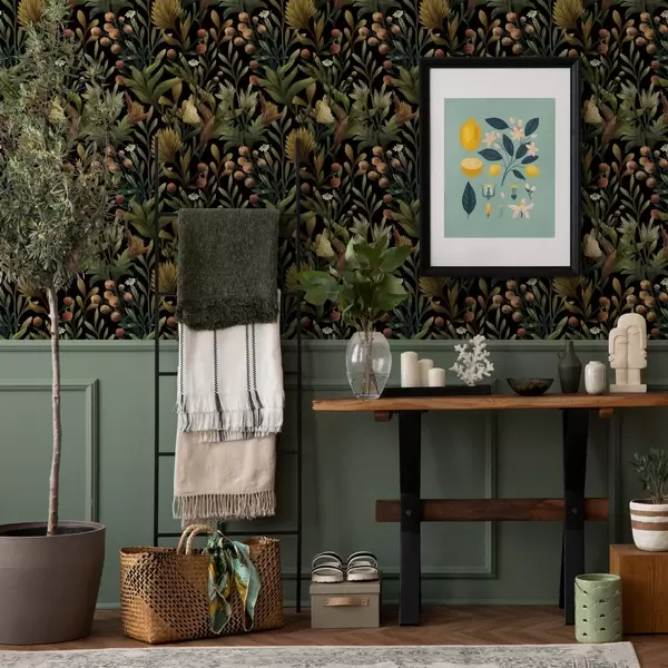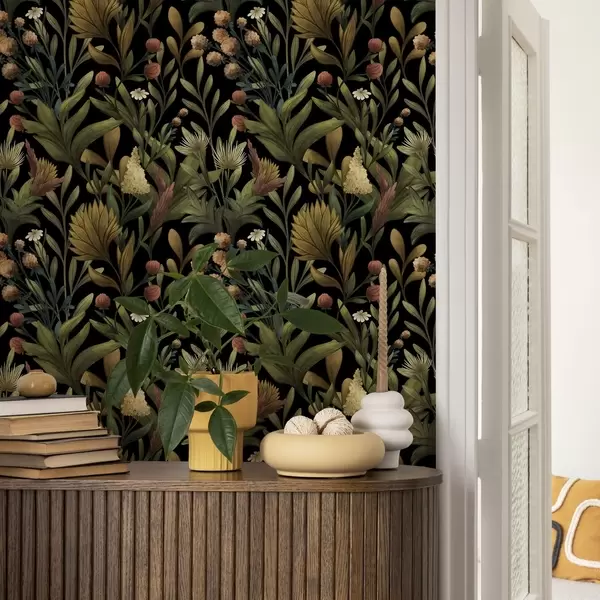 Tapety Ogród botaniczny na czarnym tle, ciepła jesienna paleta barw Nr. a00619