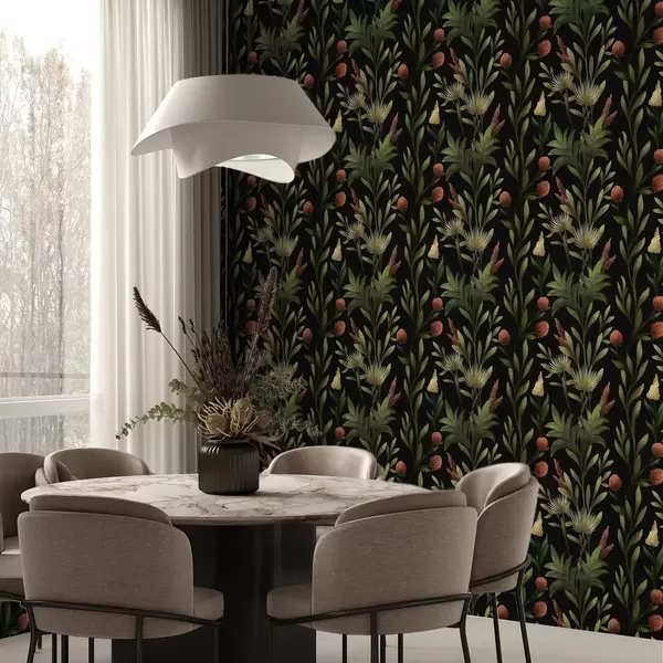 Tapety Wysokie trawy i kwiaty na czarnym, szczegółowym nadruku Nr. a00620
