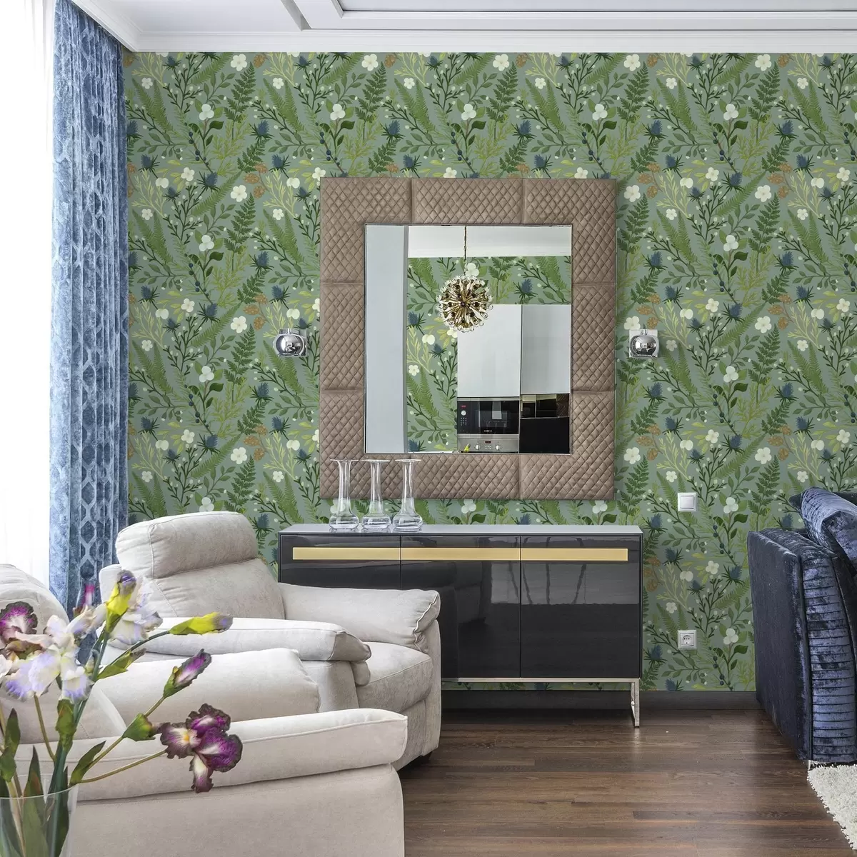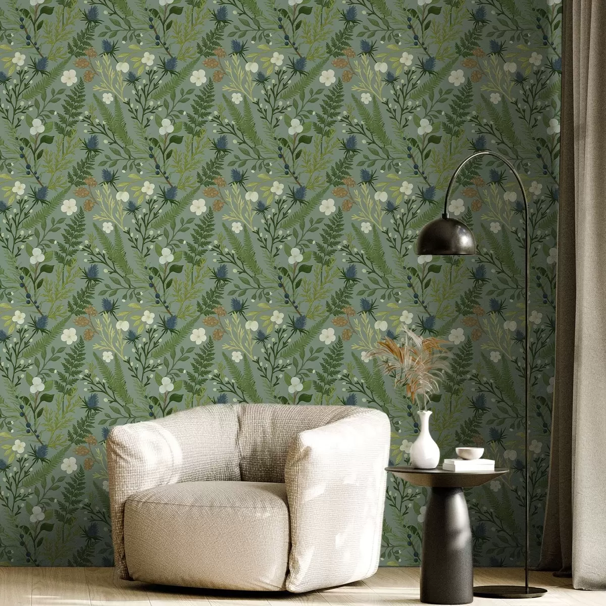 Tapety Zioła leśne, cykoria i jagody na miętowym tle Nr. a00621v1