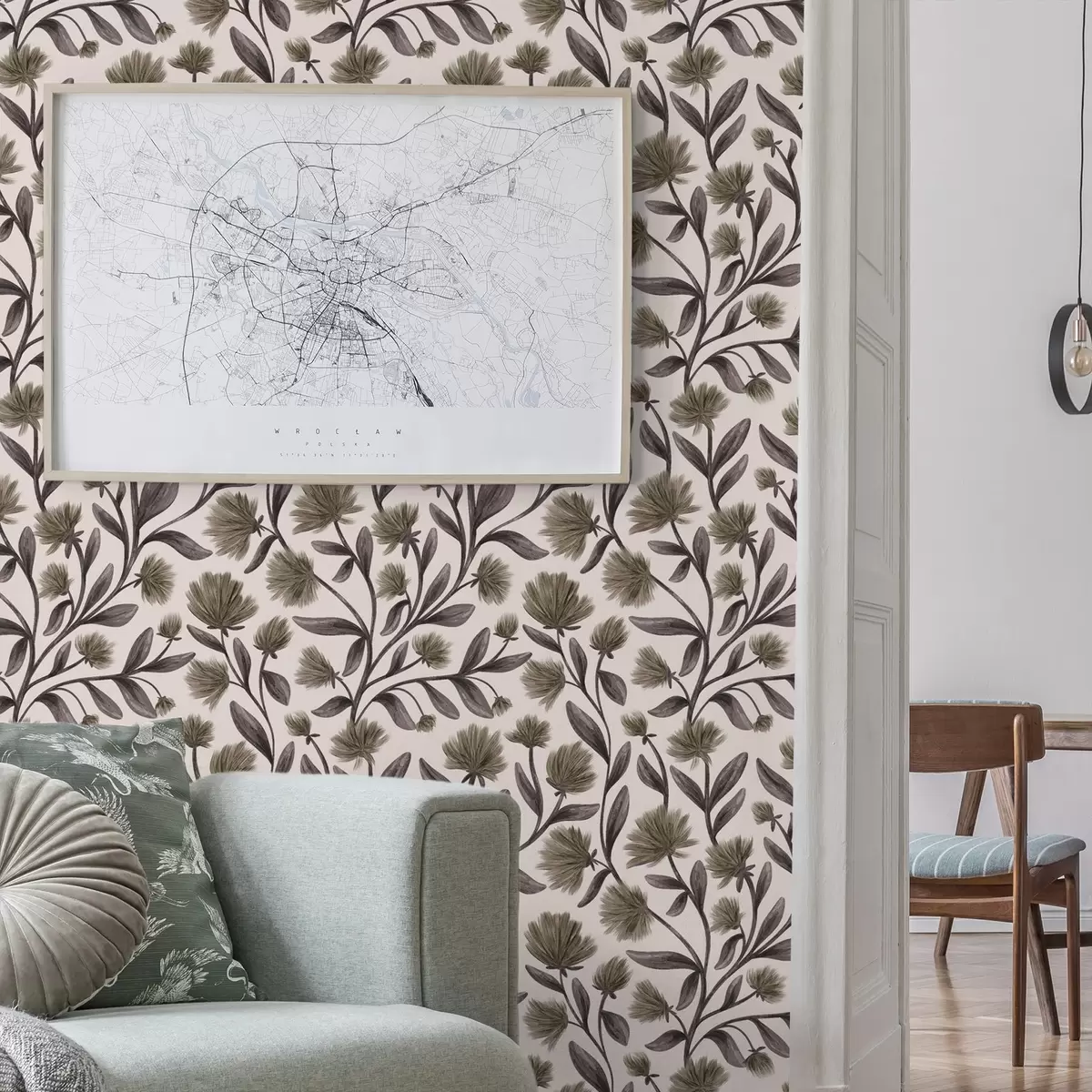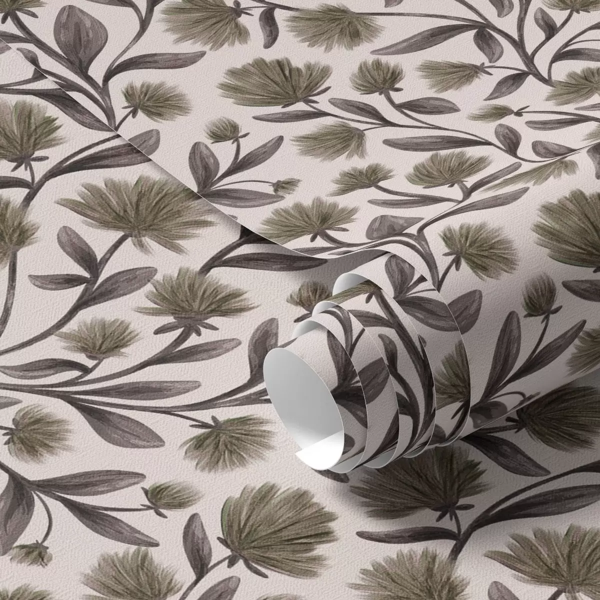 Tapety Kwiaty polne w odcieniach szaro-oliwkowych na kremowym tle Nr. a00623v1