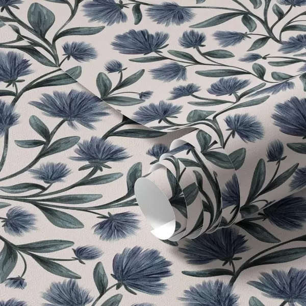 Tapety Kwiaty polne w niebiesko-zielonej palecie na kremowym tle Nr. a00623v2