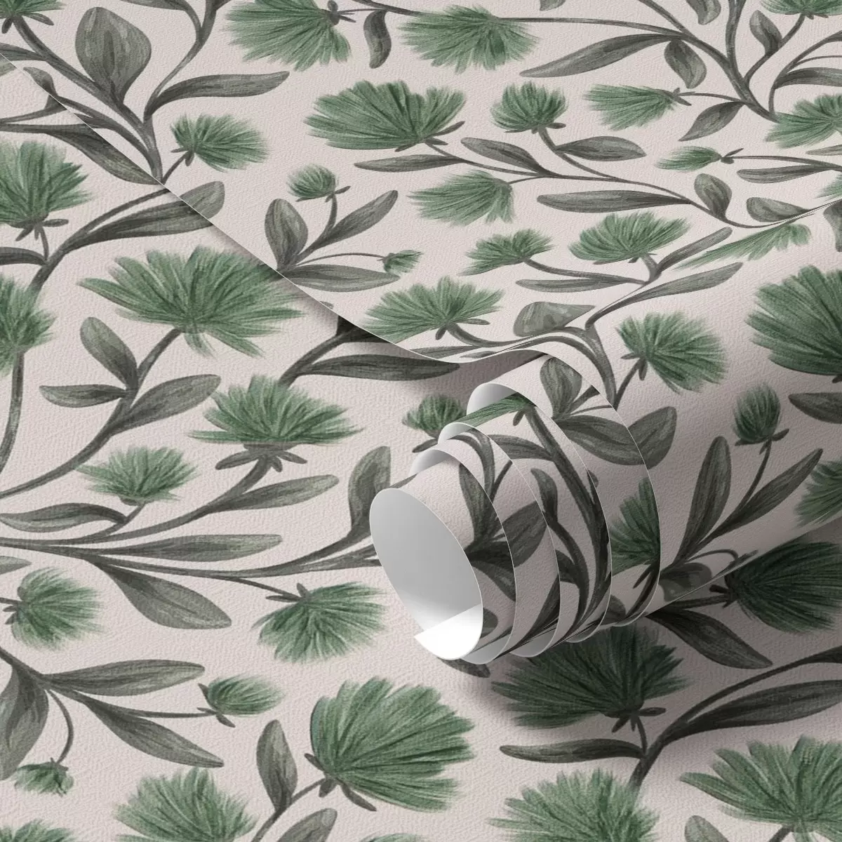 Tapety Kwiaty polne w zielonej palecie na kremowym tle Nr. a00623v3