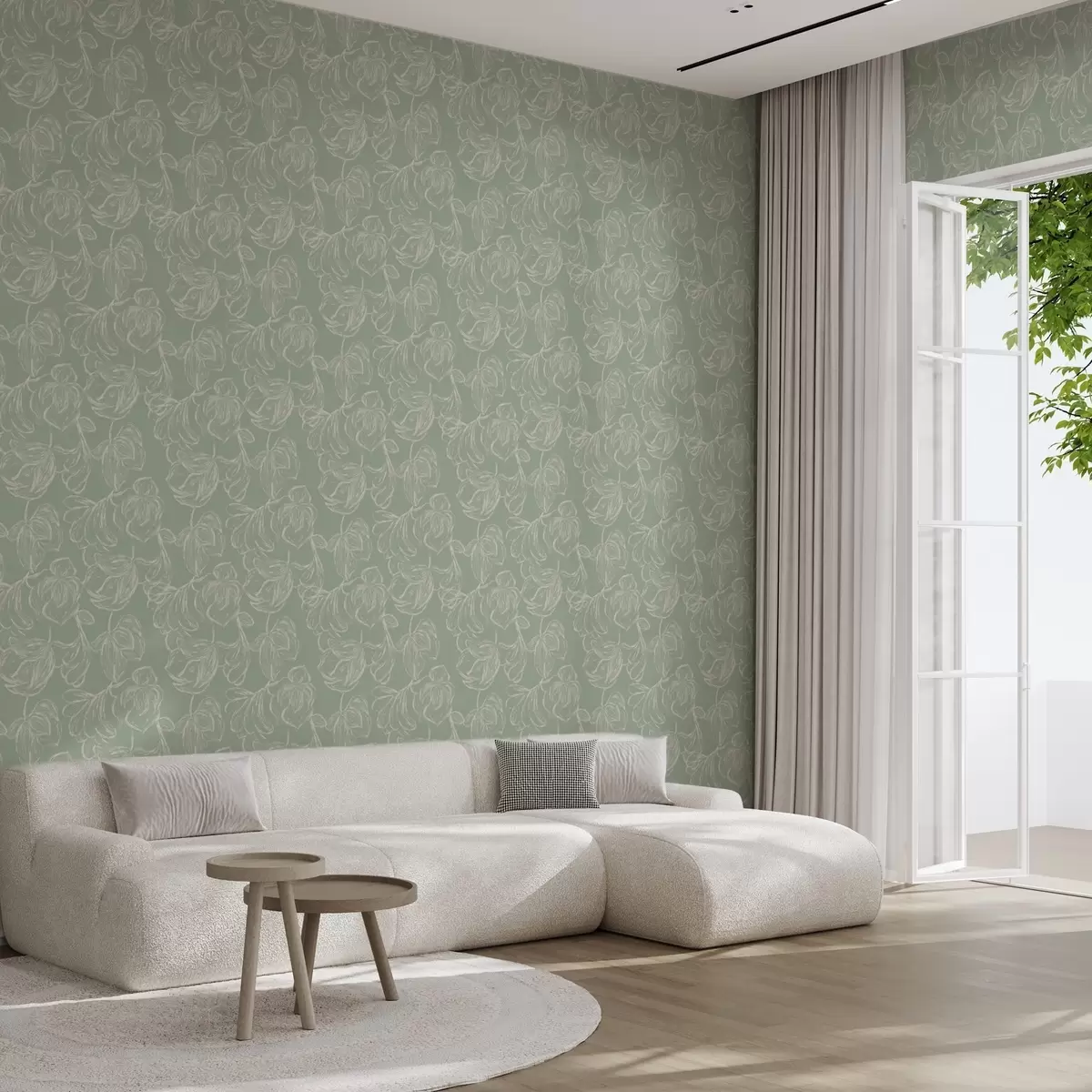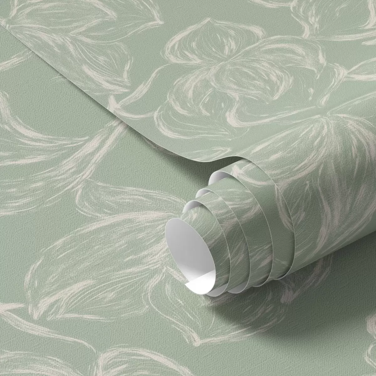 Tapety Liniowe duże kwiaty, kredowe pociągnięcia na szałwiowym tle Nr. a00625v1
