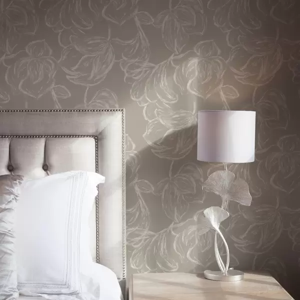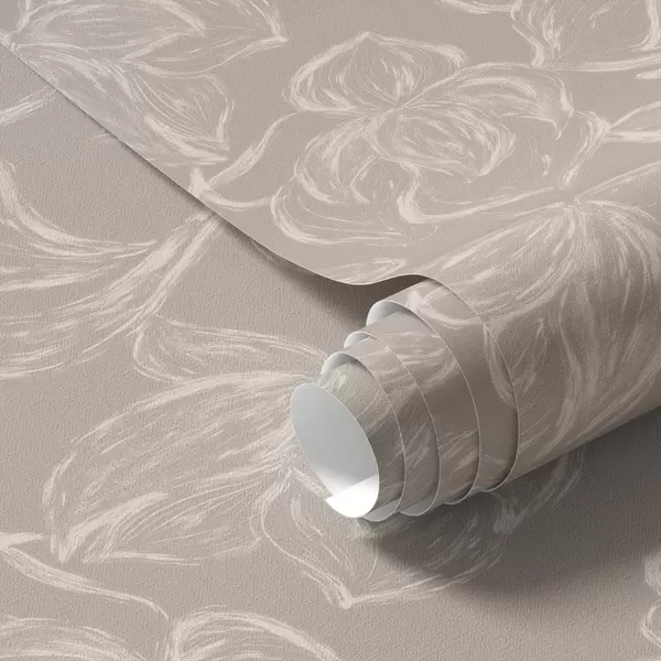 Tapety Kremowe kontury kwiatów na ciepłym tle w kolorze taupe Nr. a00625v2