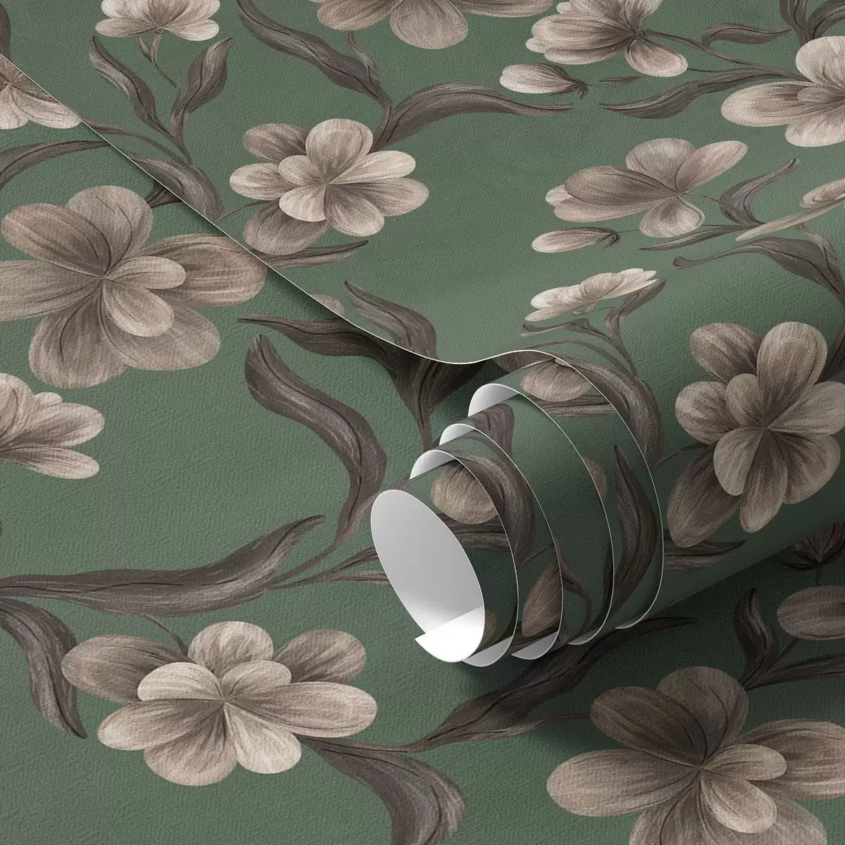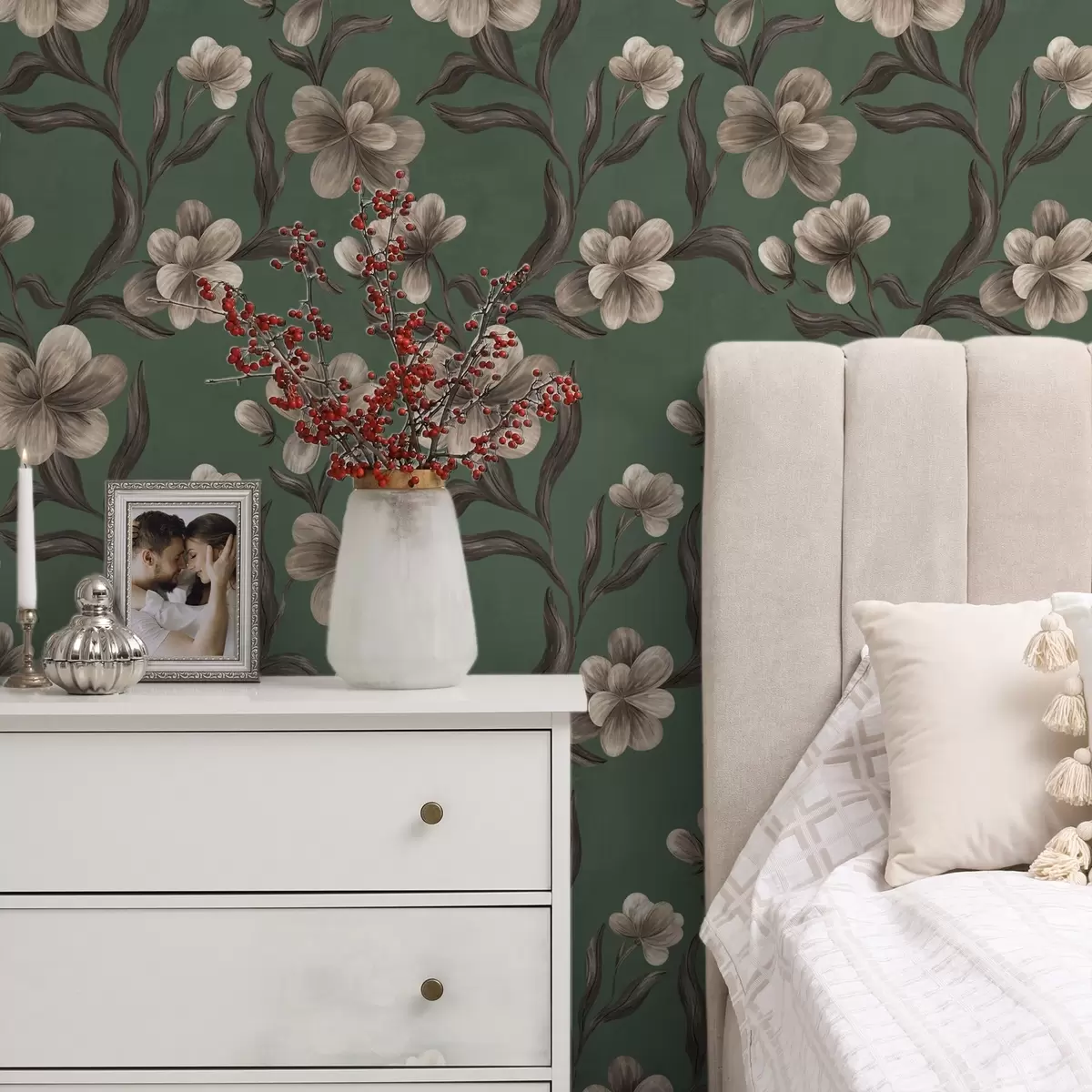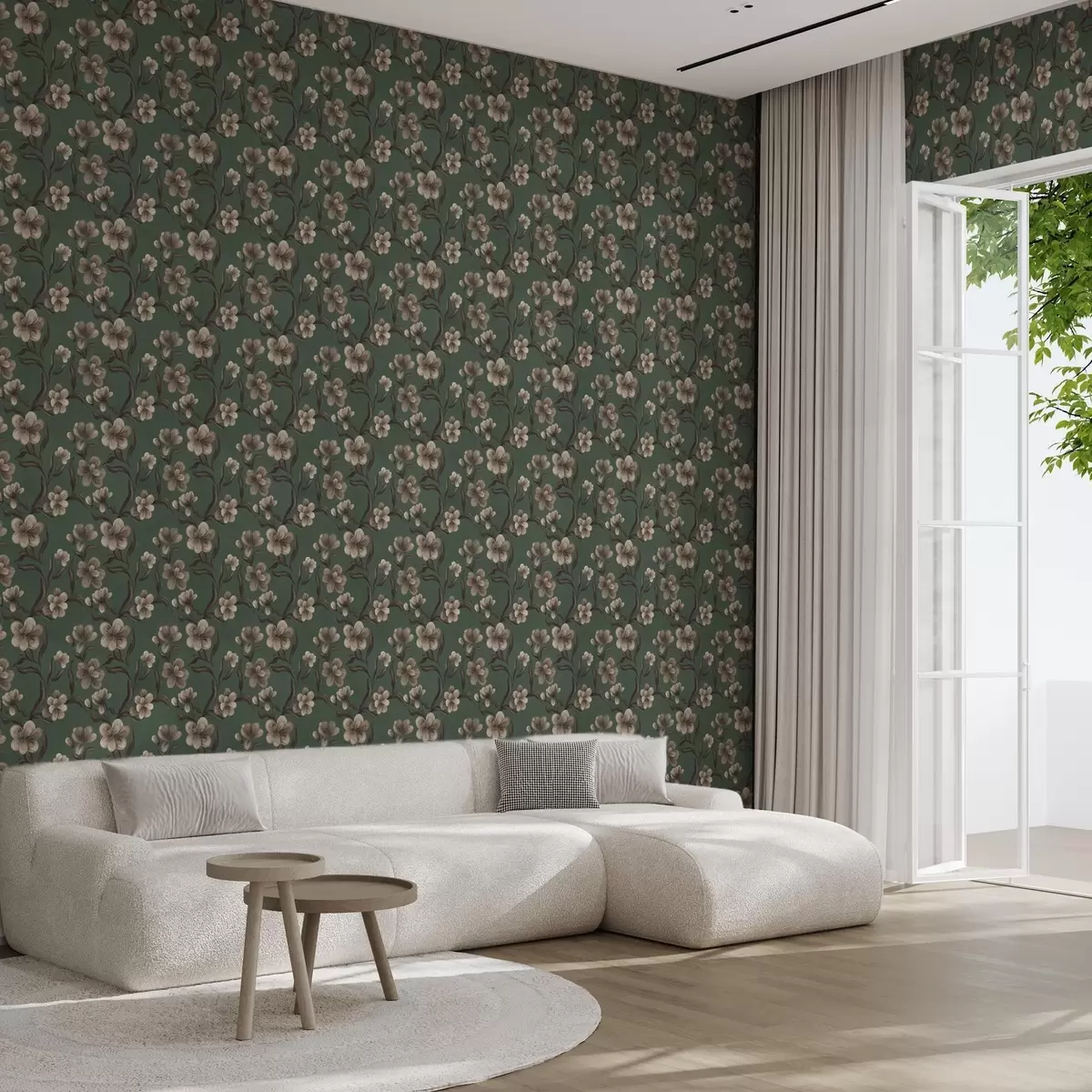Tapety Beżowe kwiaty na intensywnie zielonym tle Nr. a00626v3