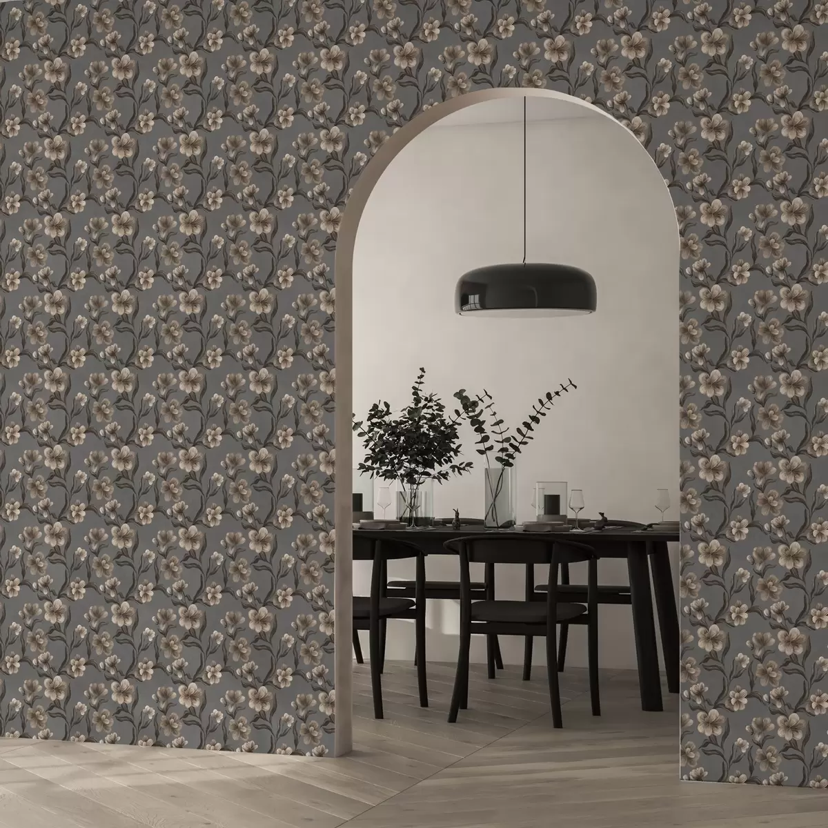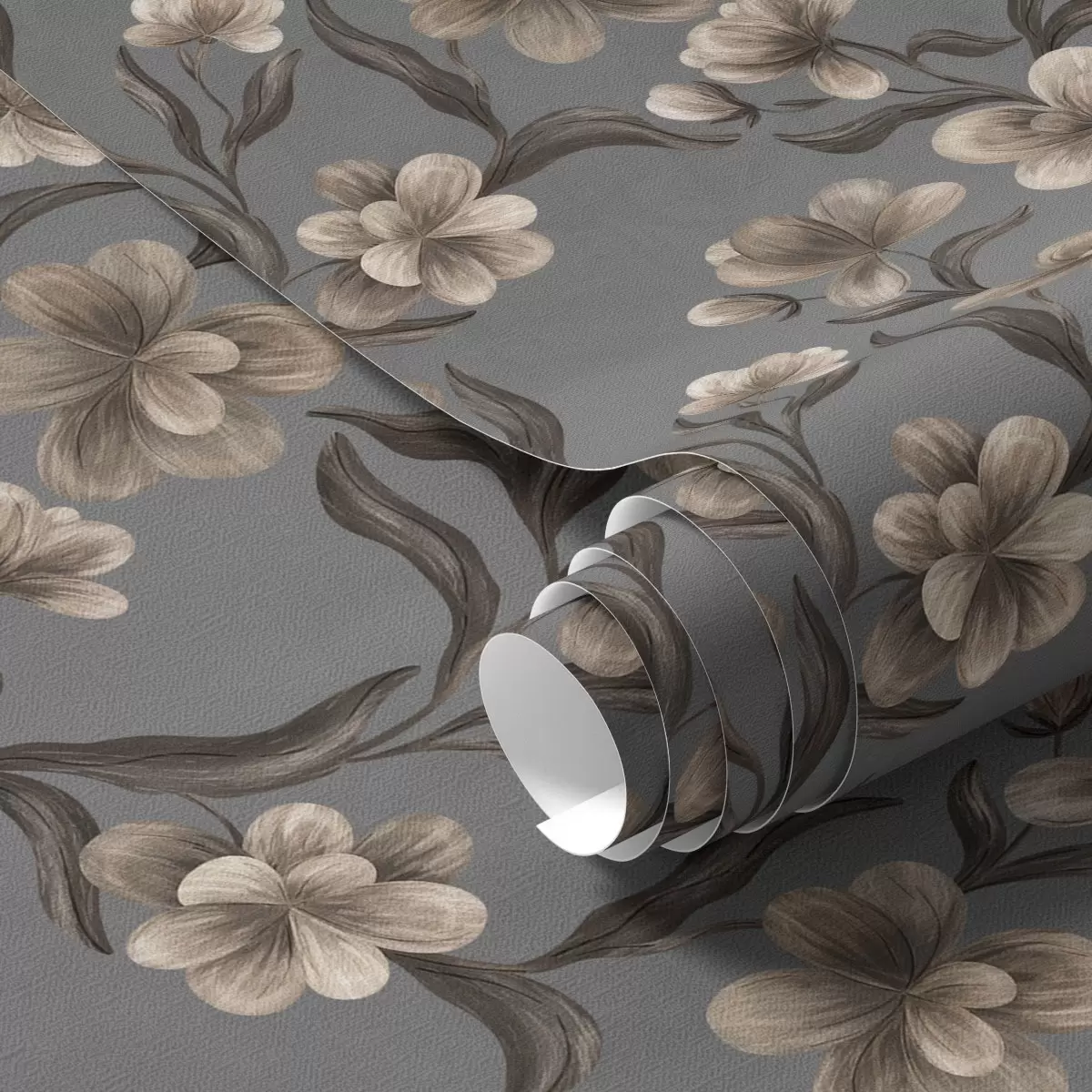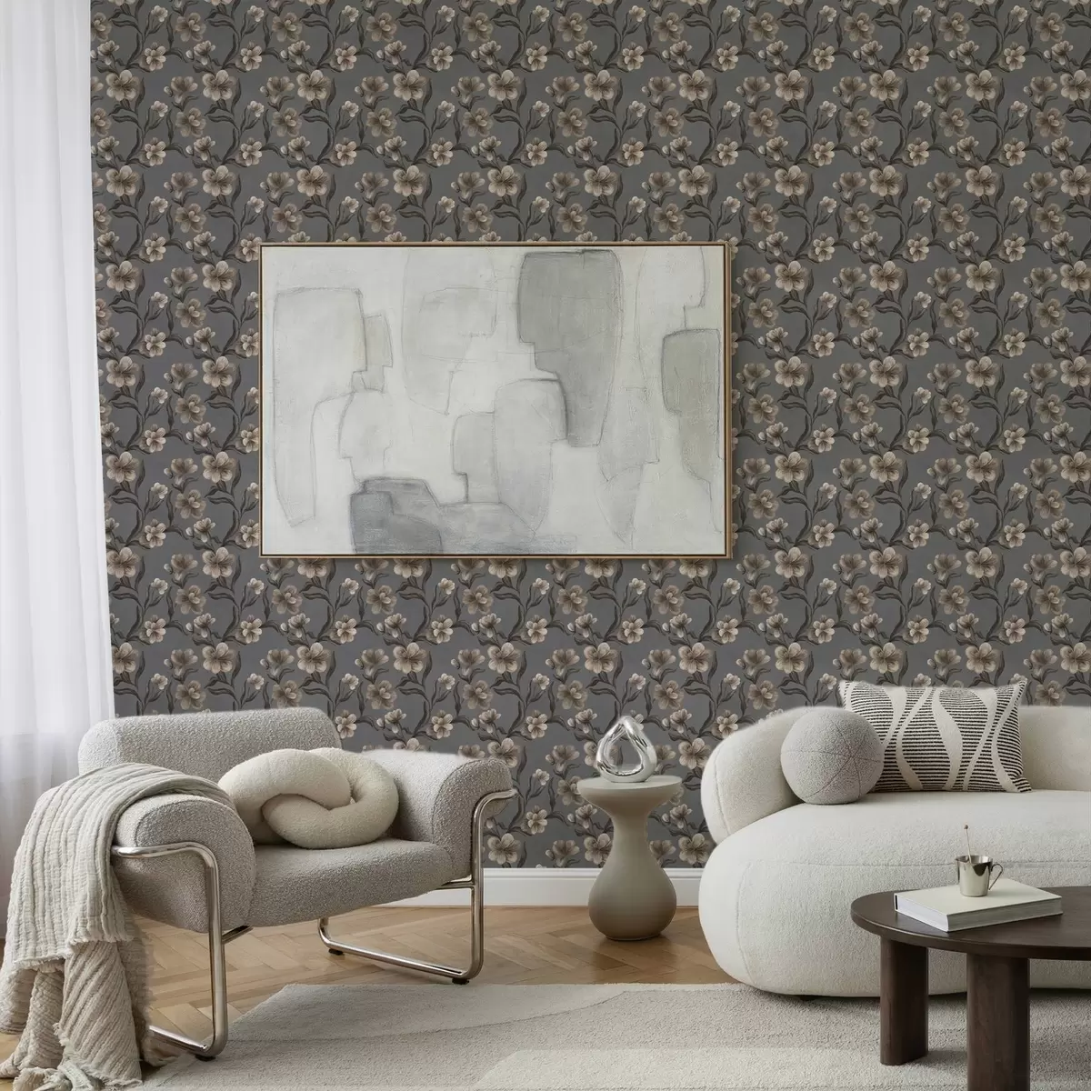 Tapety Beżowe kwiaty na grafitowo-szarym tle Nr. a00626v4