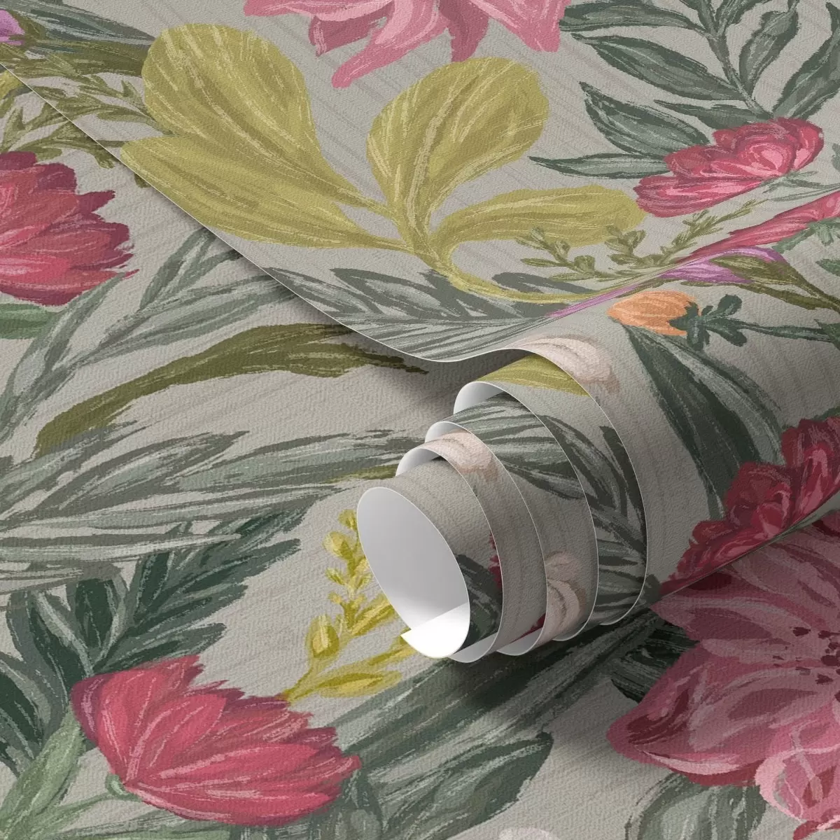Tapety Bujne różowe i kremowe kwiaty na szarym tle, faktura impasto Nr. a00629
