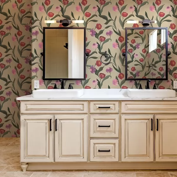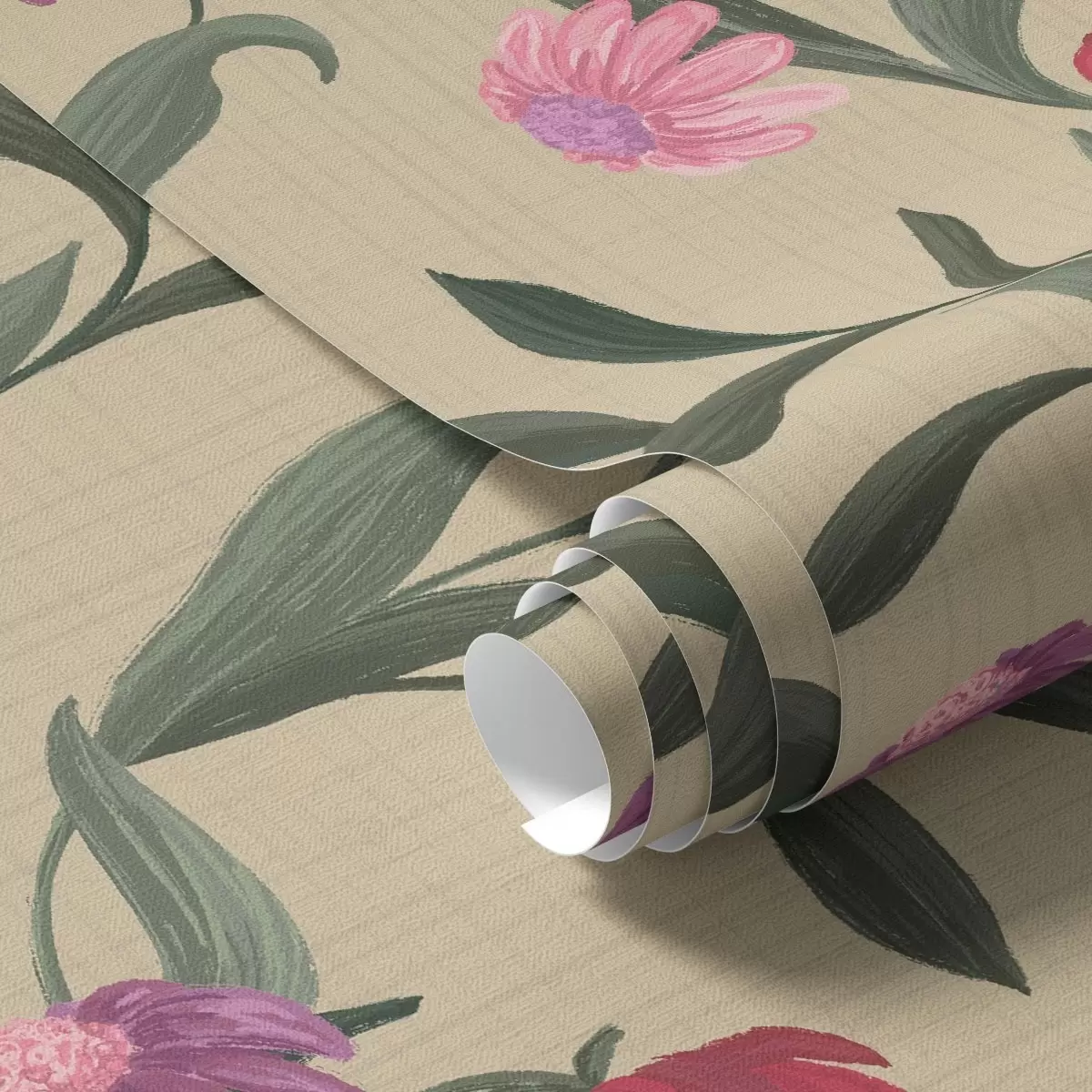 Tapety Różowo-czerwone kwiaty na beżowym tle, ręcznie rysowana tekstura Nr. a00631