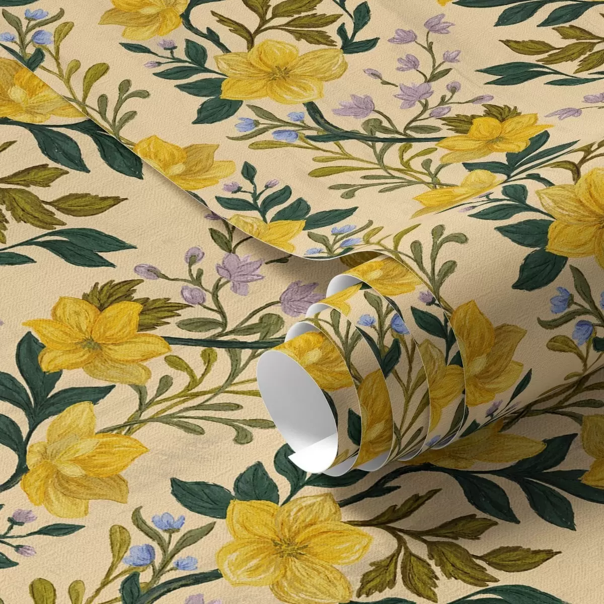 Tapety Żółte kwiaty w pionowych girlandach na kremowym tle Nr. a00632