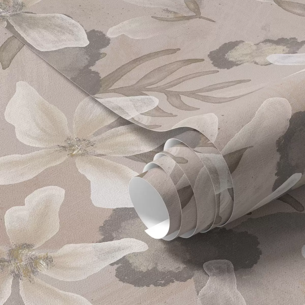 Tapety Duże beżowe kwiaty z abstrakcyjnymi plamami akwareli Nr. a00635