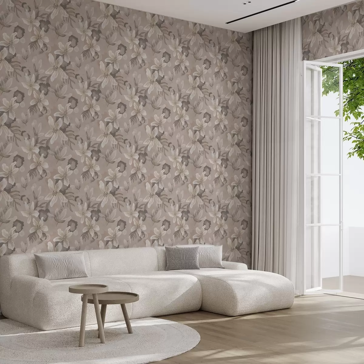 Tapety Duże beżowe kwiaty z abstrakcyjnymi plamami akwareli Nr. a00635