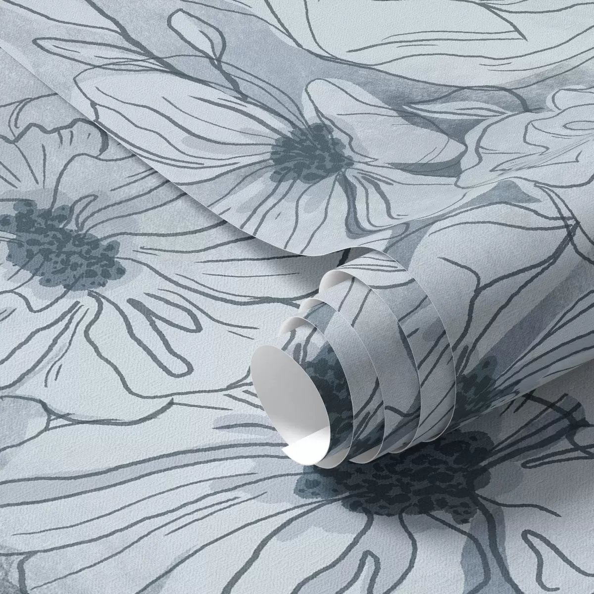 Tapety Kwiaty w liniowym układzie w chłodnej szaro-niebieskiej palecie barw Nr. a00636v2