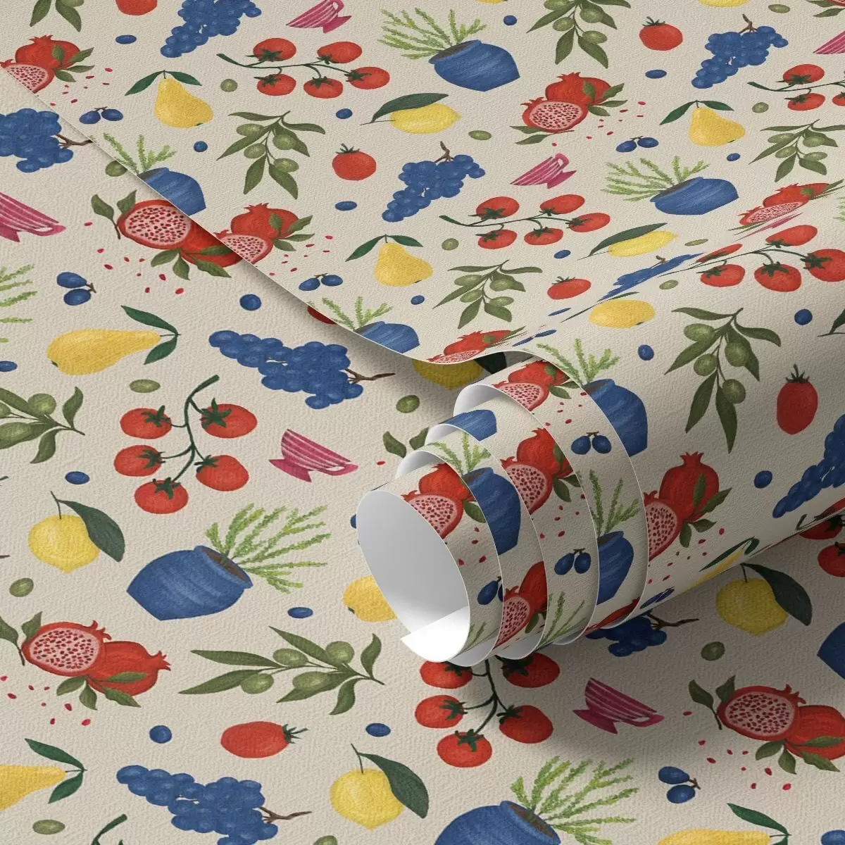 Tapety Żywy wzór z owocami, gałęziami i wazonami Nr. a00637