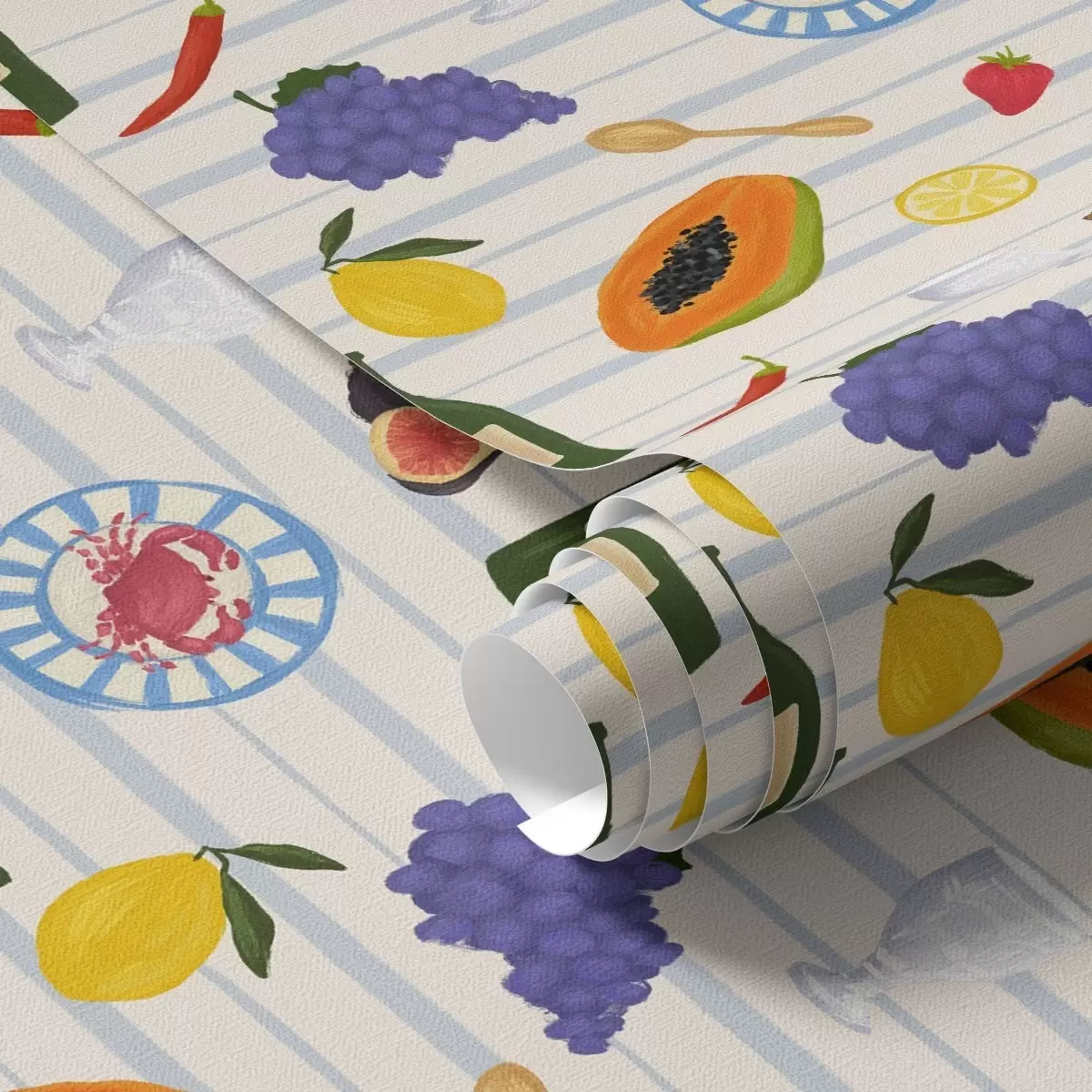 Tapety Grafika kuchenna z owocami, szklankami i talerzami Nr. a00638