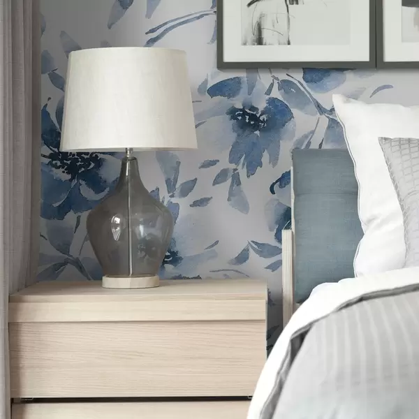 Tapety Akwarelowe piwonie w kolorze indygo na białym tle Nr. a00641