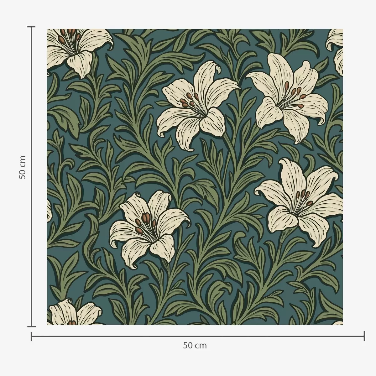 Tapety Kremowe lilie wśród gęstej zieleni na turkusowym tle Nr. a00645