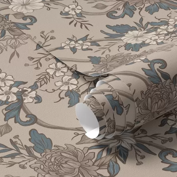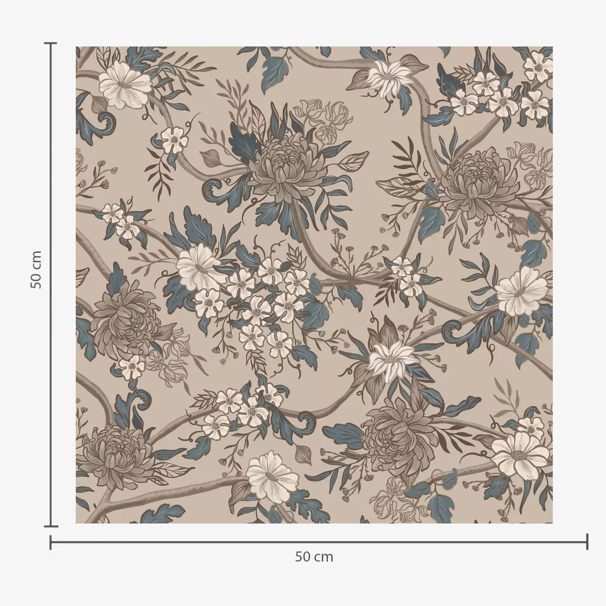 Tapety Duże kwiaty z wzorzystymi liśćmi na ciepłym beżowym tle Nr. a00649