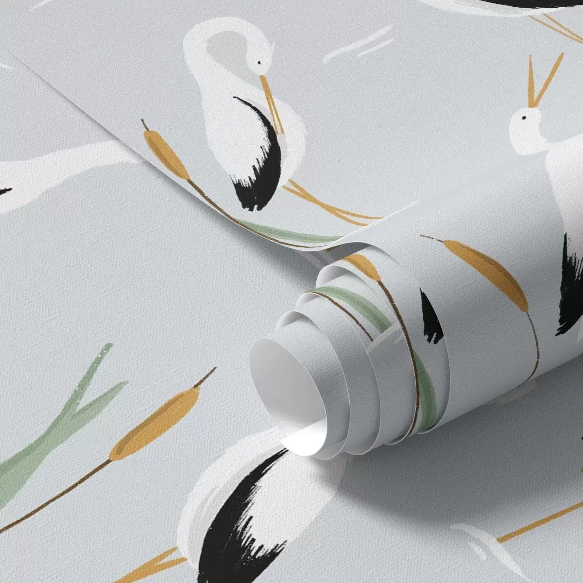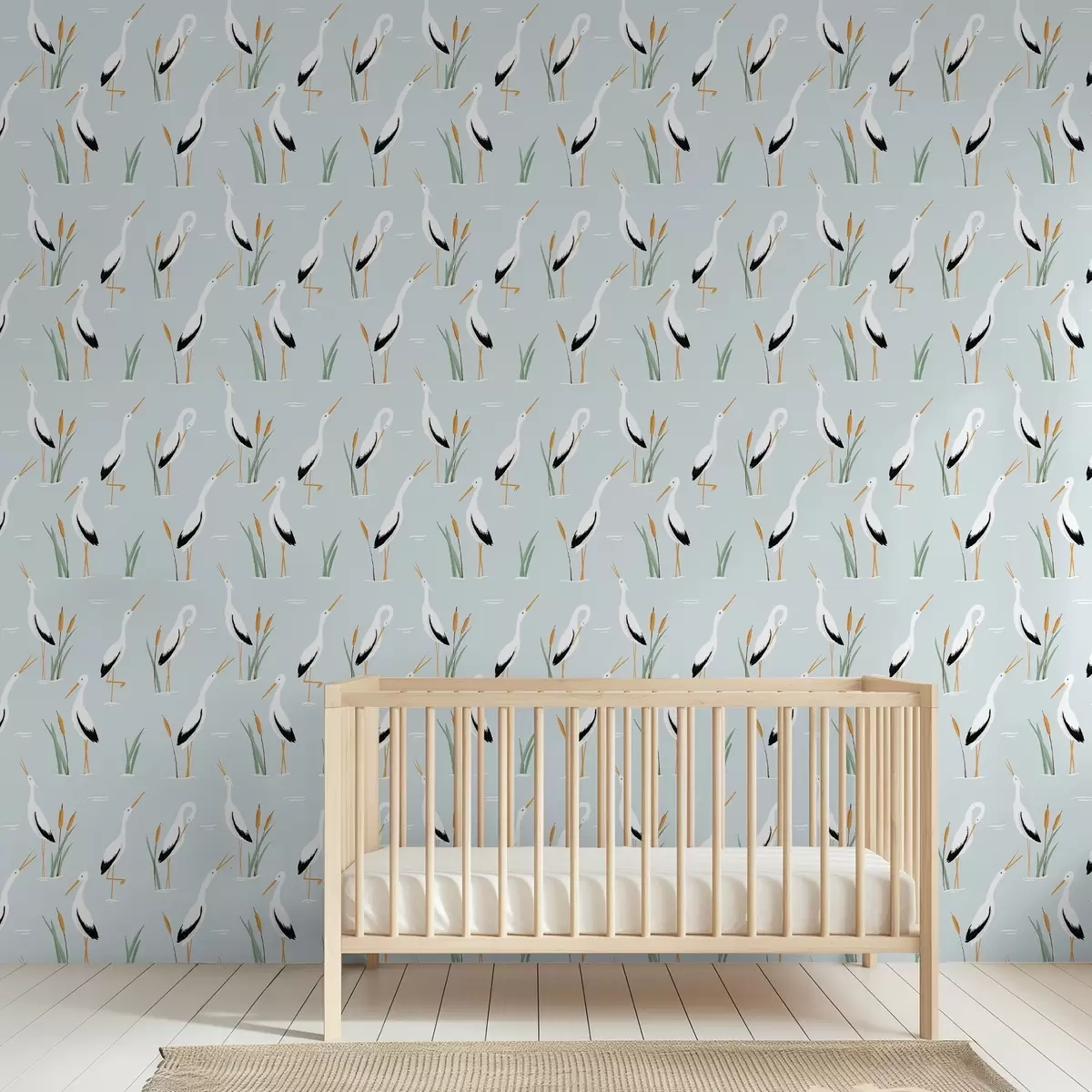 Tapety Czaple wśród trzcin na delikatnym niebieskim tle Nr. a00650v1