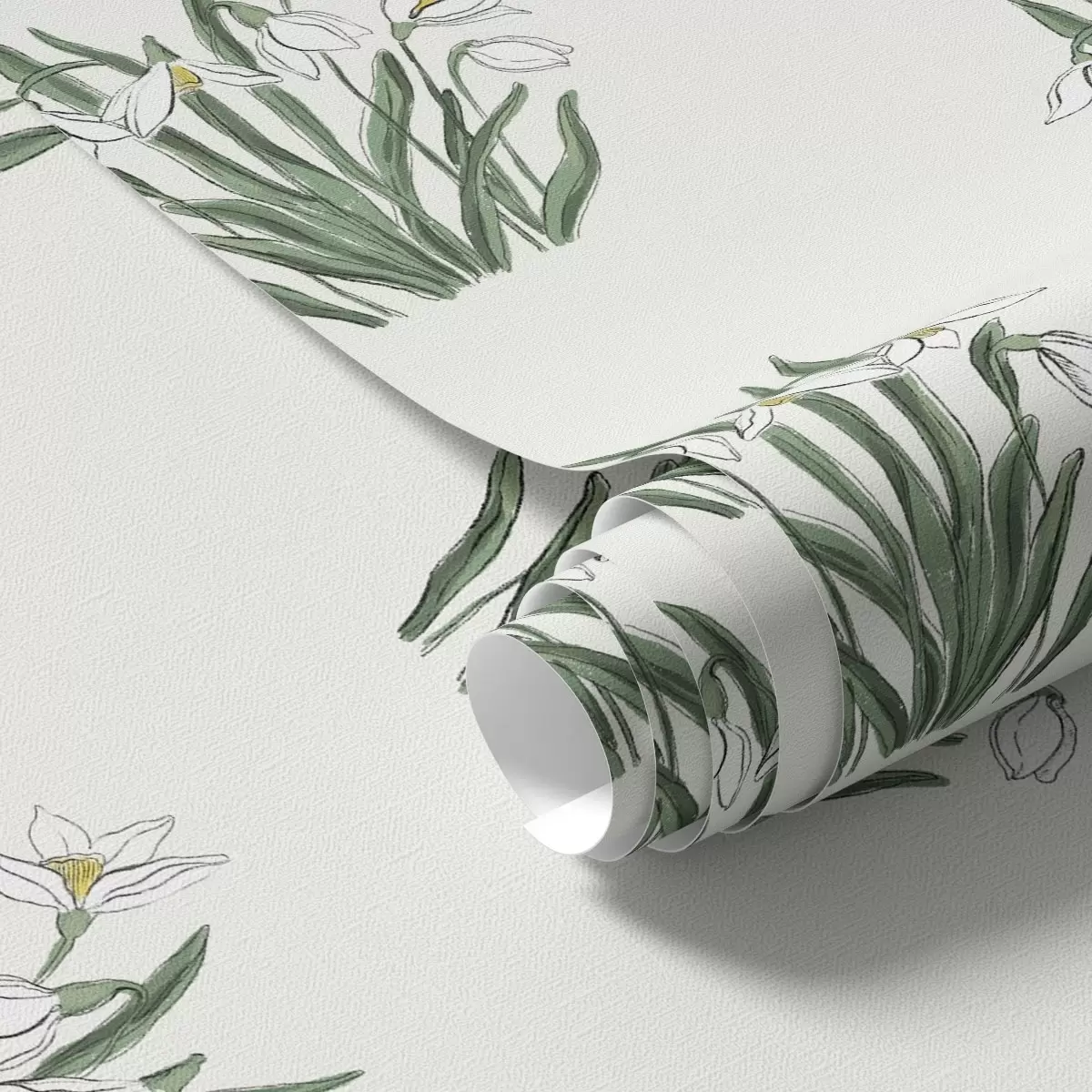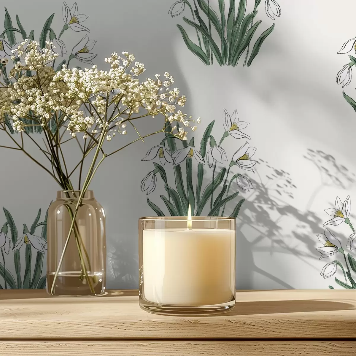 Tapety Przebiśniegi z zielonymi liśćmi na jasnoszarym tle Nr. a00651v1