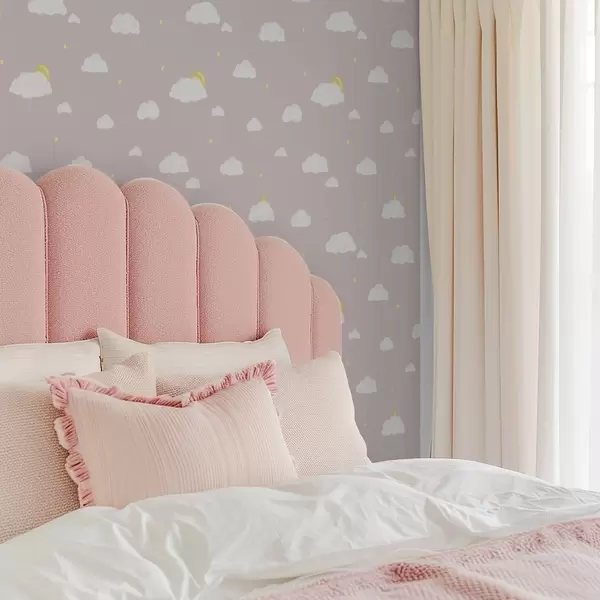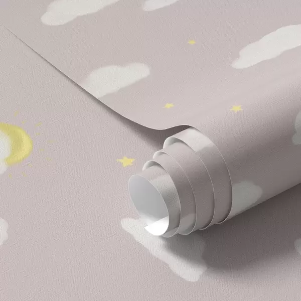 Tapety Miękkie chmury, gwiazdy i słońce na różowo-szarym tle Nr. a00652v2