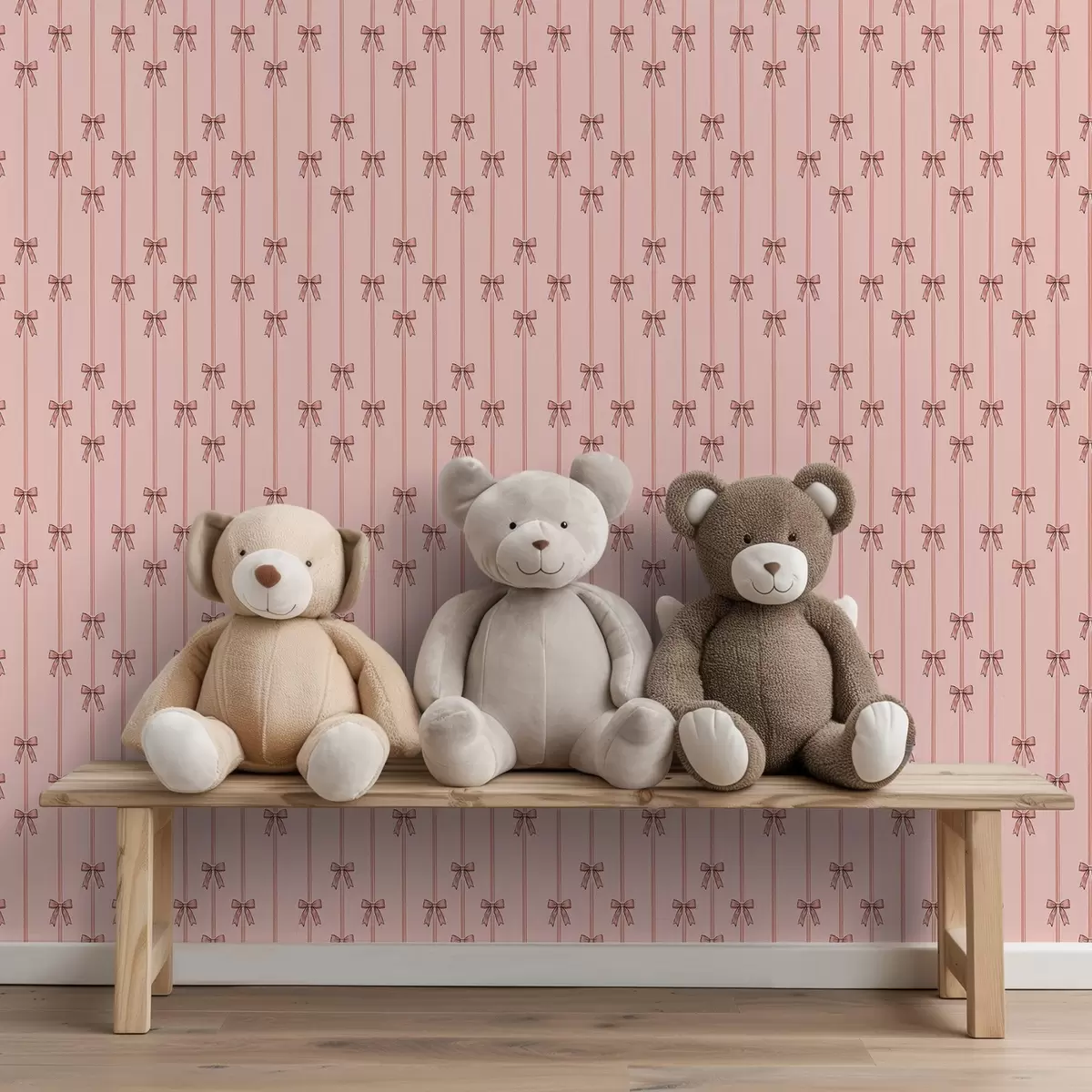 Tapety Pionowe wstążki z kokardkami, koralowo-różowe tło Nr. a00653v3