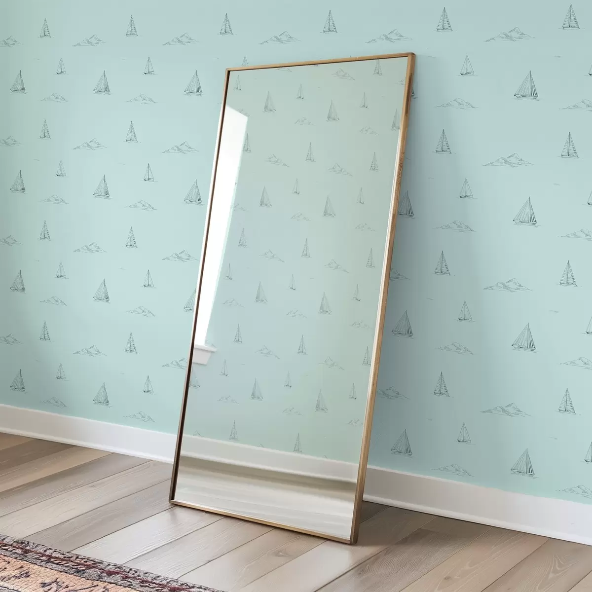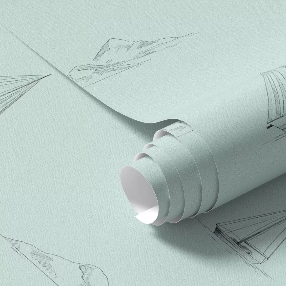 Tapety Szkic jachtów i wysp, miętowo-zielone tło Nr. a00654v4