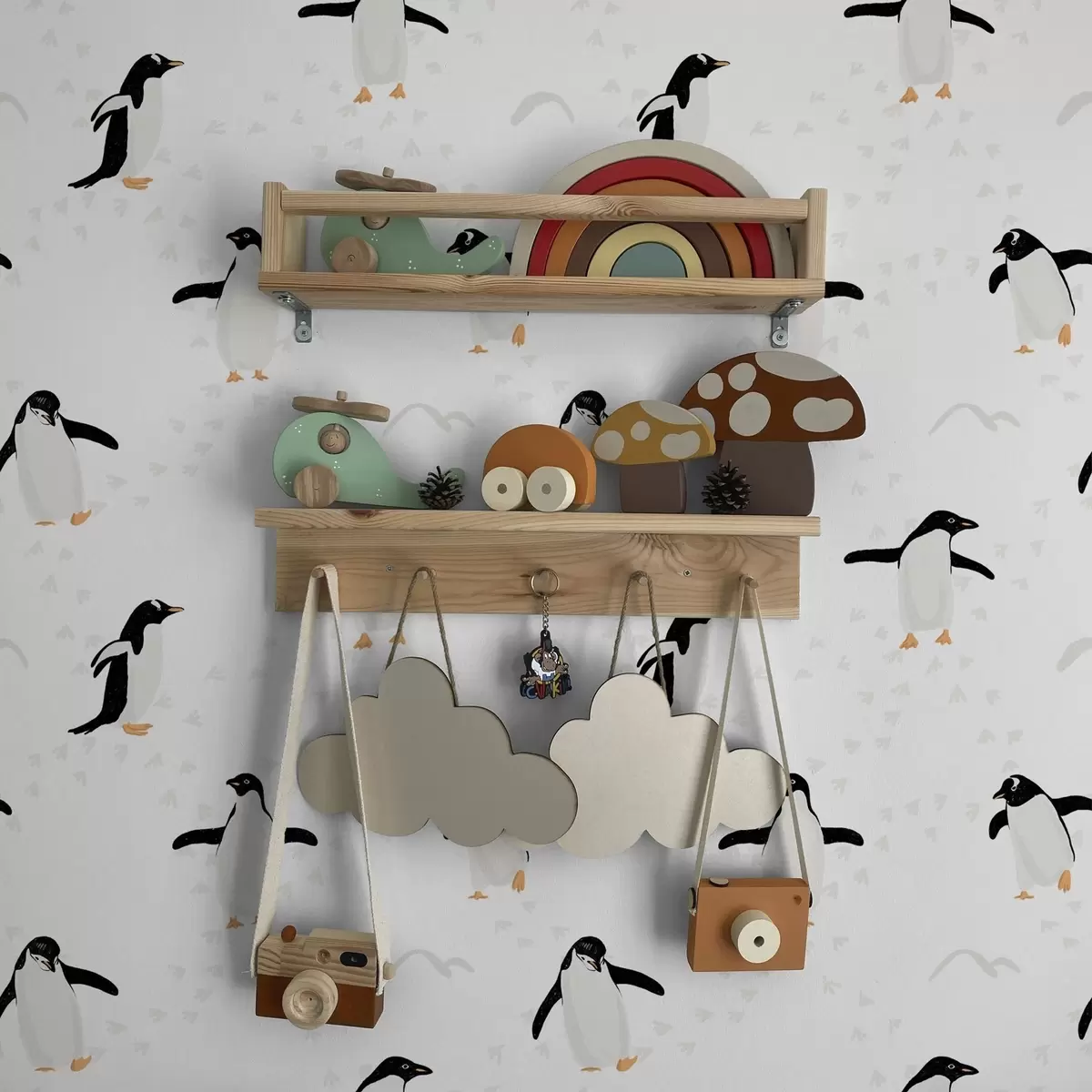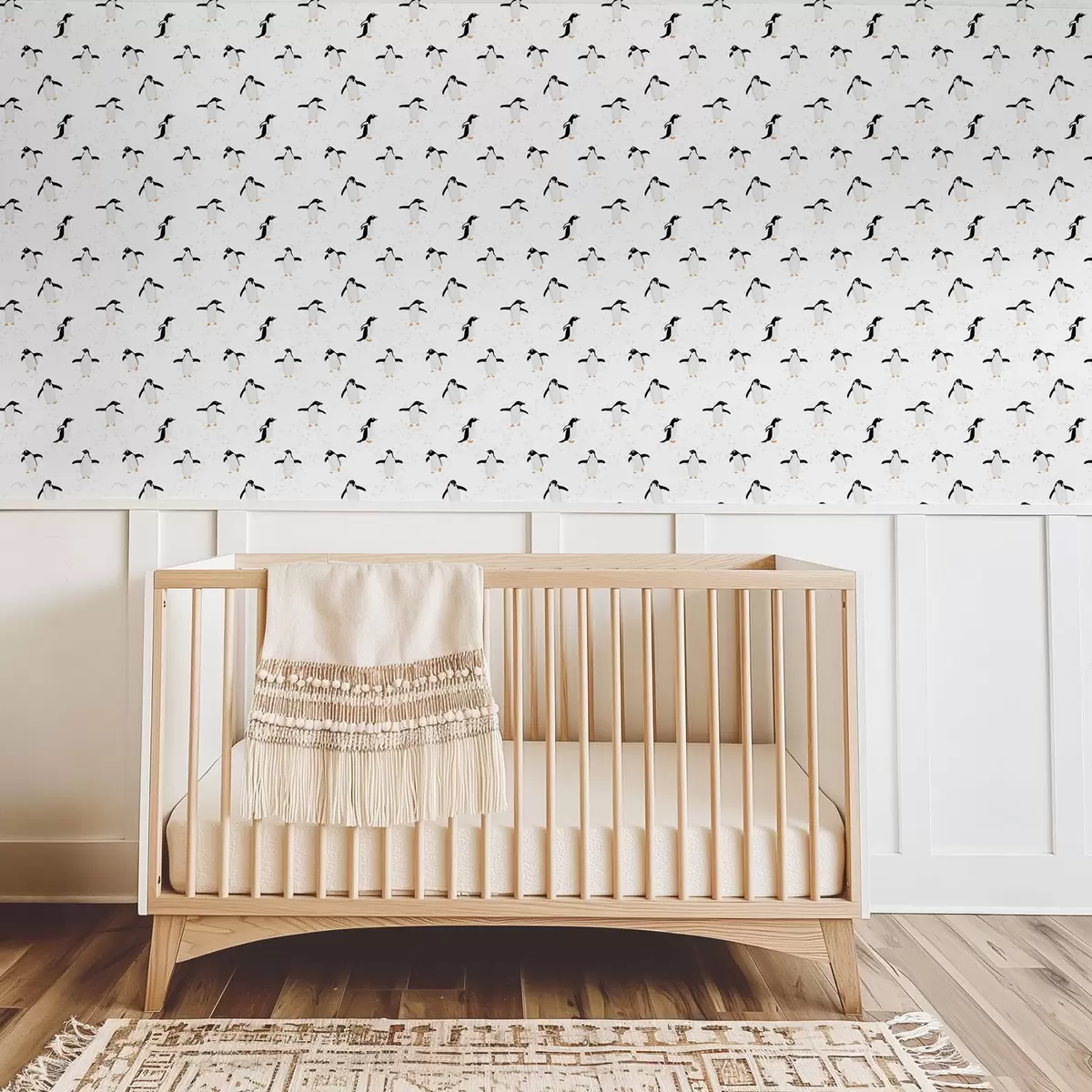 Tapety Pingwiny na białym tle z odciskami łap Nr. a00655v1