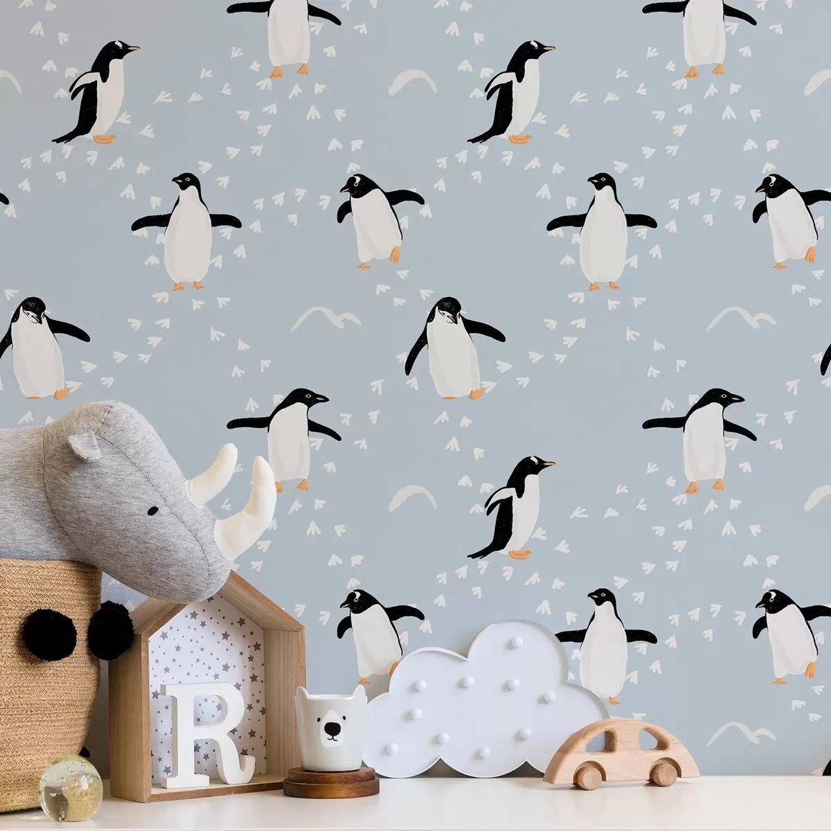 Tapety Pingwiny na jasnoniebieskim tle, rytm śladów stóp Nr. a00655v2