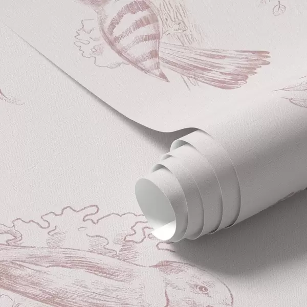 Tapety Ptasie toile: szkice ptaków, delikatne różowe tło Nr. a00656