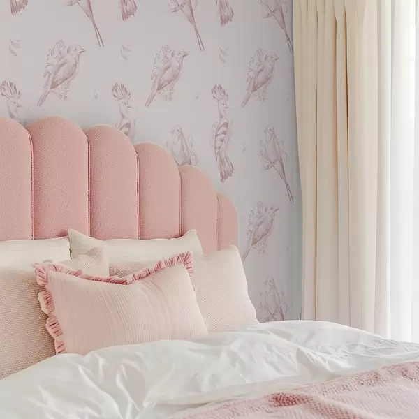 Tapety Ptasie toile: szkice ptaków, delikatne różowe tło Nr. a00656