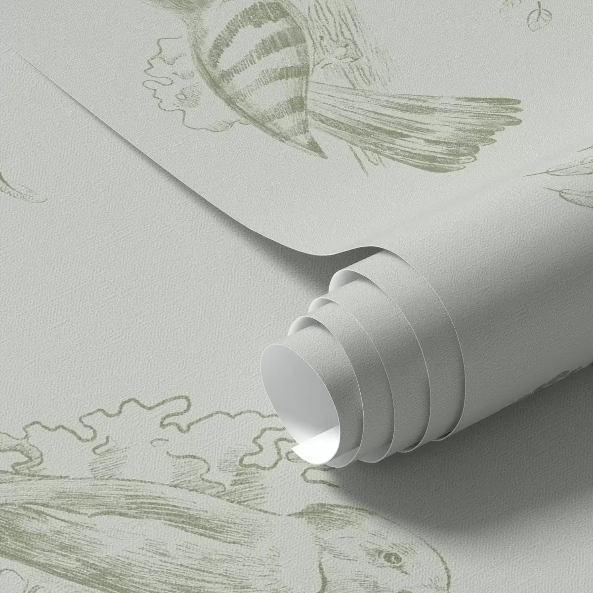 Tapety Ptasie toile: szkice ptaków na szaro-zielonym tle Nr. a00656v1