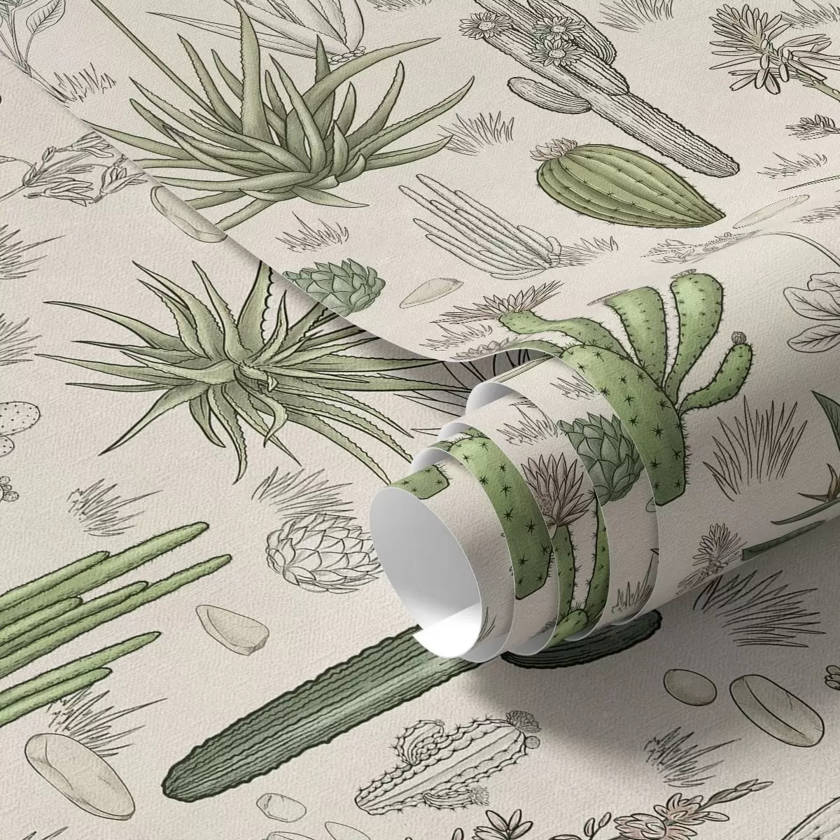 Tapety Kaktusy i sukulenty na ciepłym tle, szczegółowy nadruk Nr. a00666