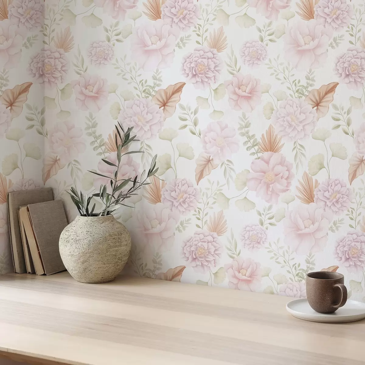Tapety Delikatne pastelowe piwonie i liście na białym tle Nr. a00669