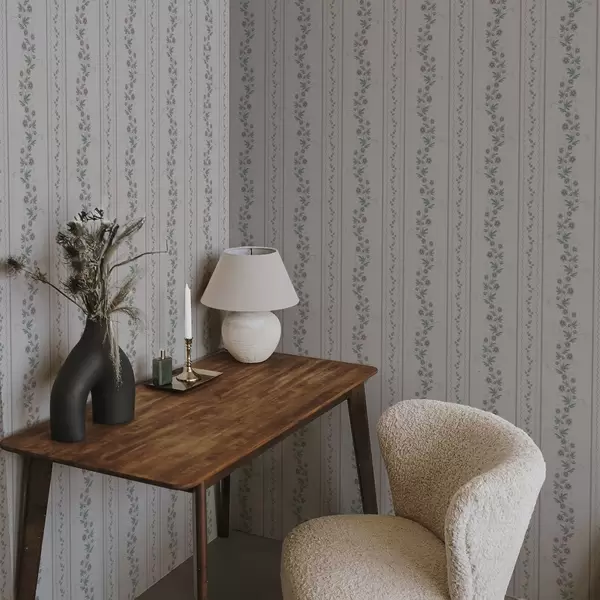 Tapety Delikatne paski z kwiatami lawendy, styl vintage Nr. a00671
